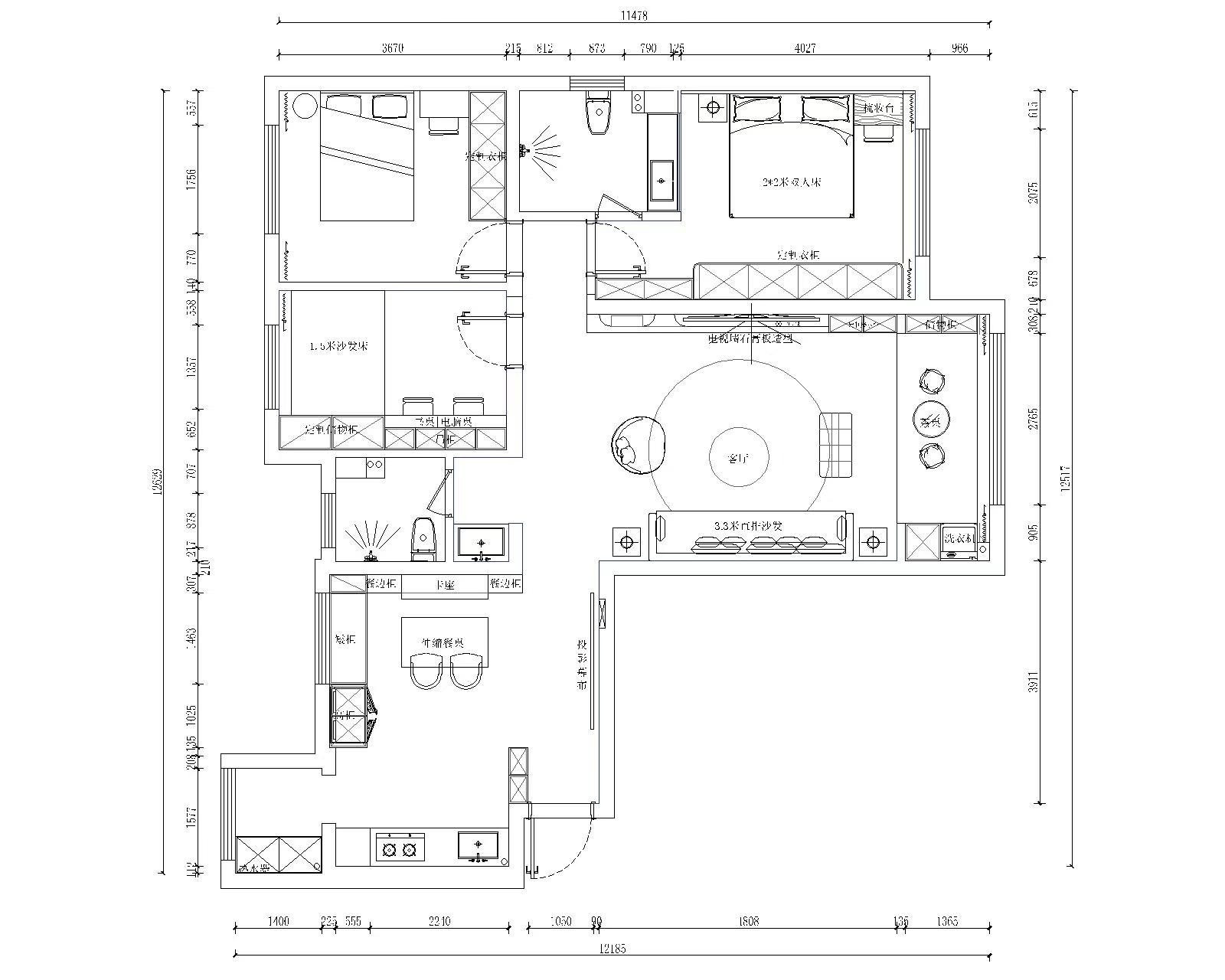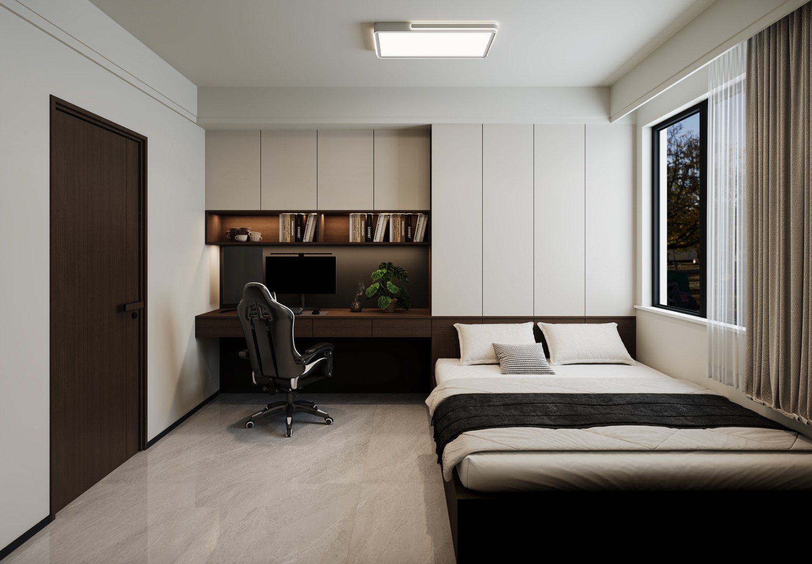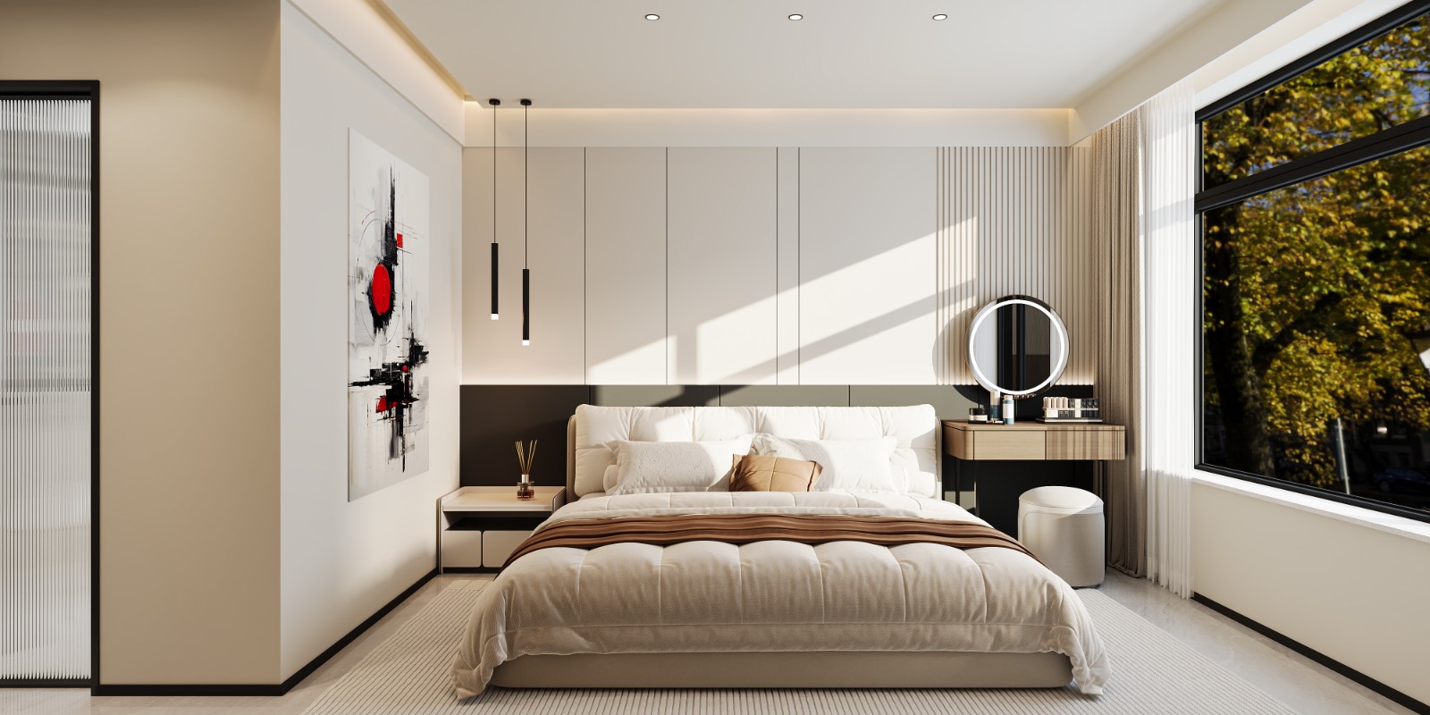 遵循对称美学,衣柜采用对开门加中线装饰线。