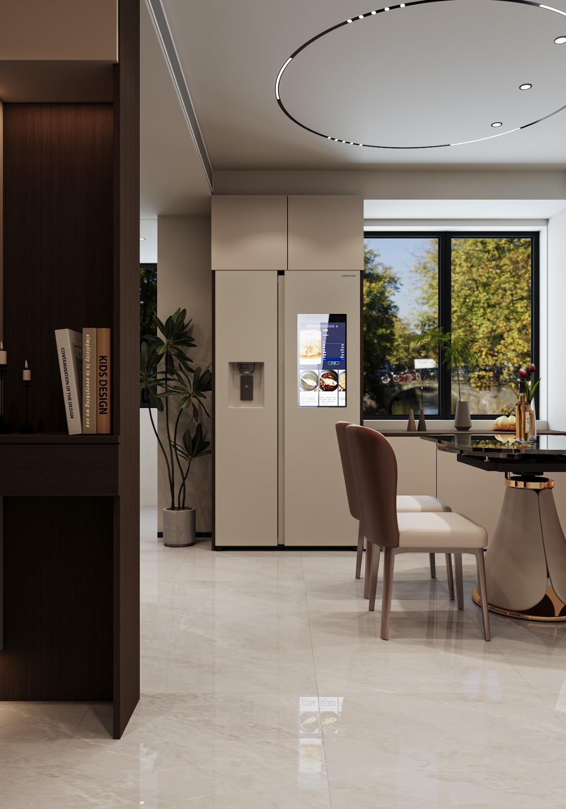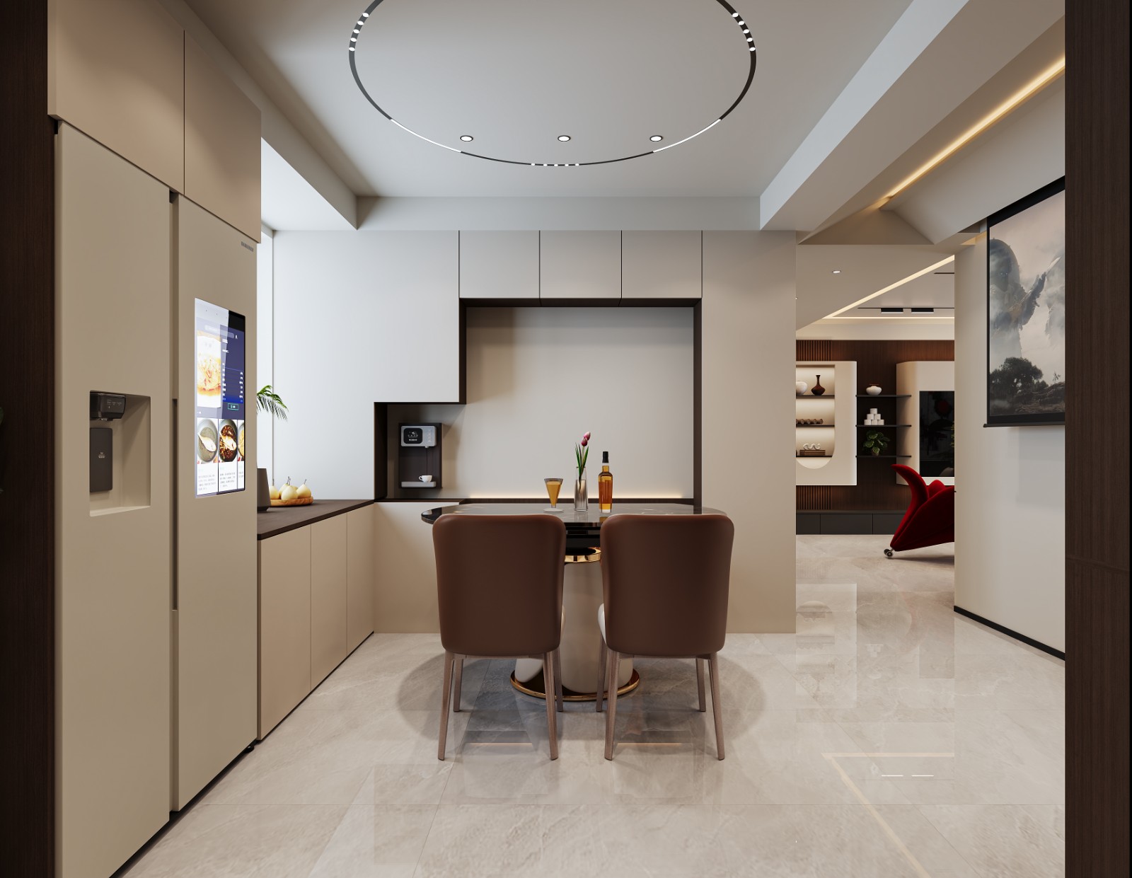 延续意式风格的“低饱和***感”,墙面多采用米白、浅灰、暖杏色等中性色,搭配深木色餐边柜护墙板,营造沉稳氛围。
