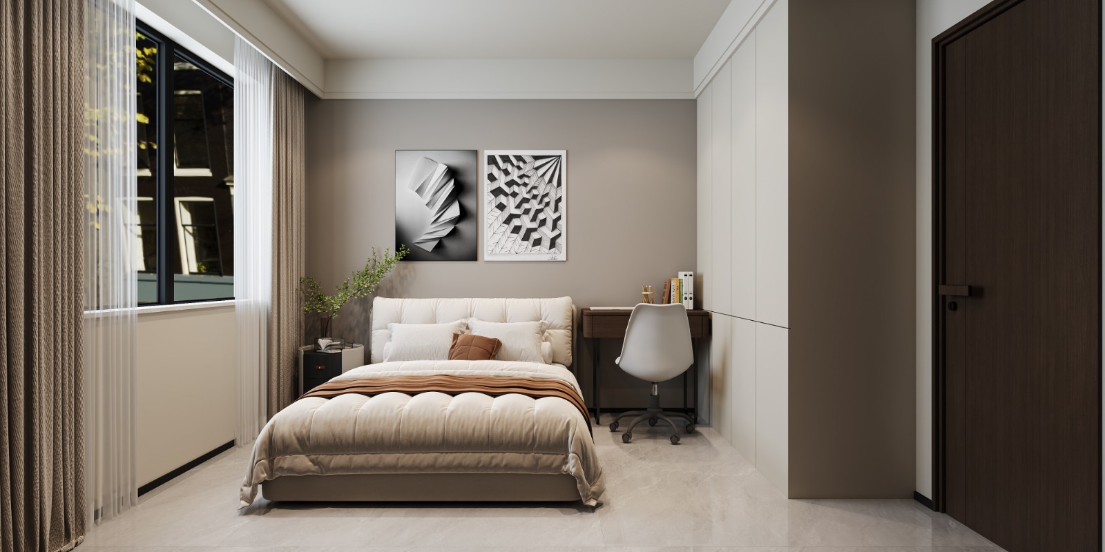 意式卧室设计融合了古典与现代元素,注重材质质感、色彩搭配和空间氛围营造,展现出优雅、简洁且舒适的风格特点