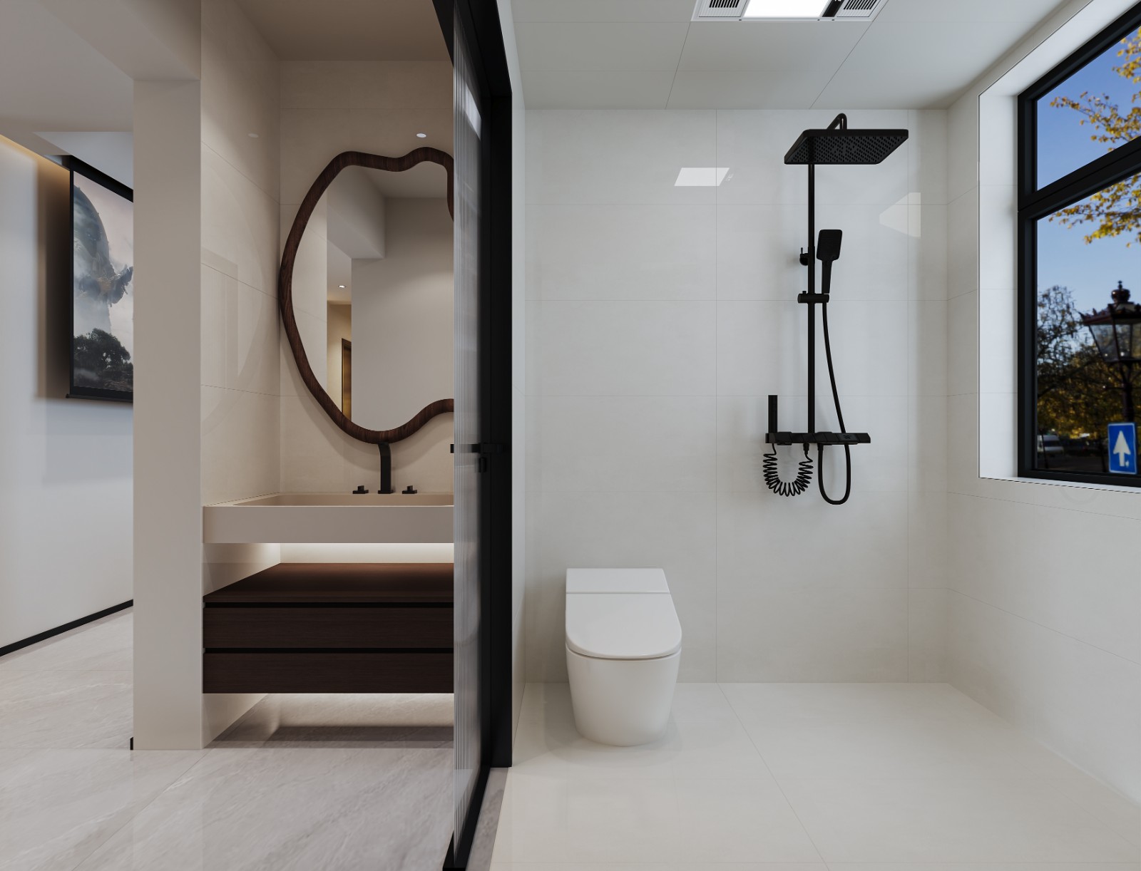 卫生间干湿分离是指将卫生间内的淋浴区(湿区)与洗手台其他功能区(干区)进行物理分隔的设计理念