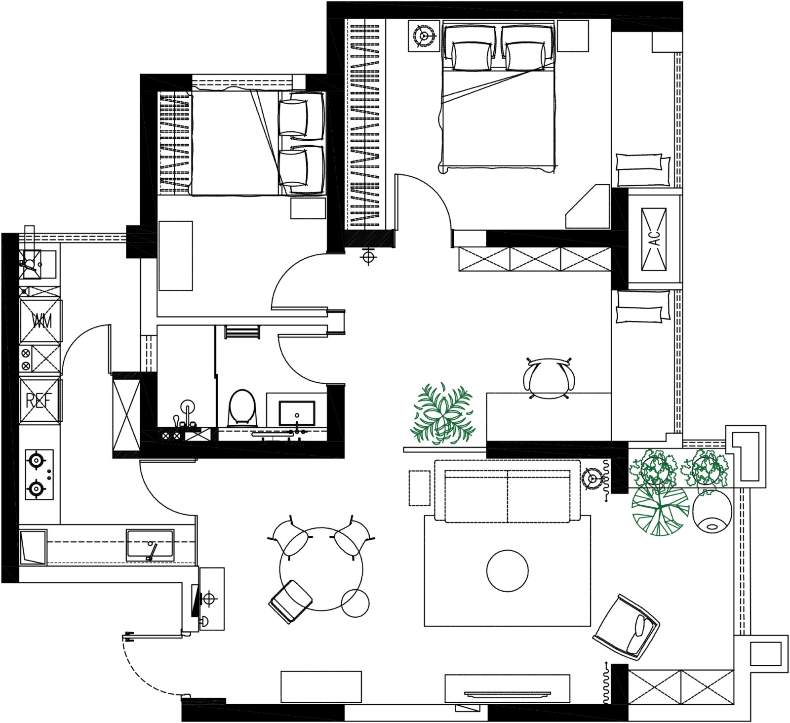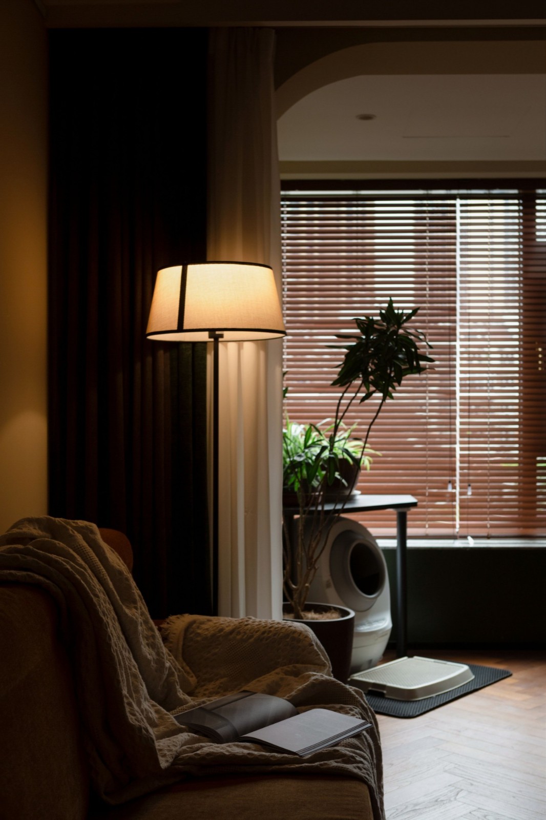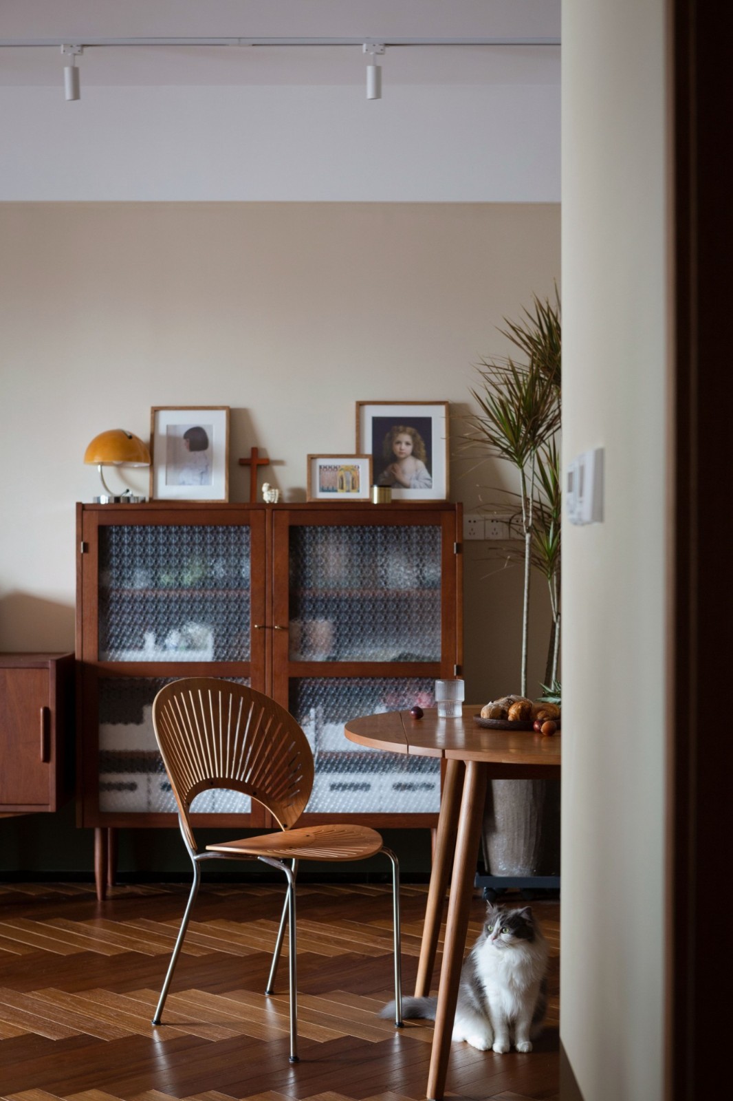 角落的绿植、宠物用品,是“有人住”的生活痕迹,比空荡的精致更动人。