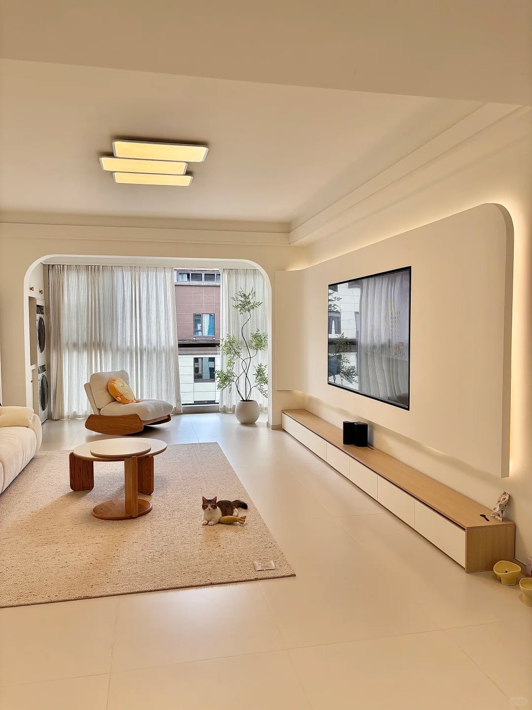 全屋通铺暖调柔光砖搭配乳白色墙漆,简洁明亮