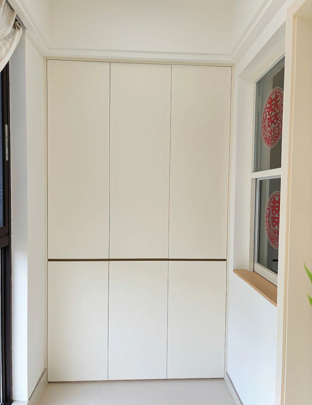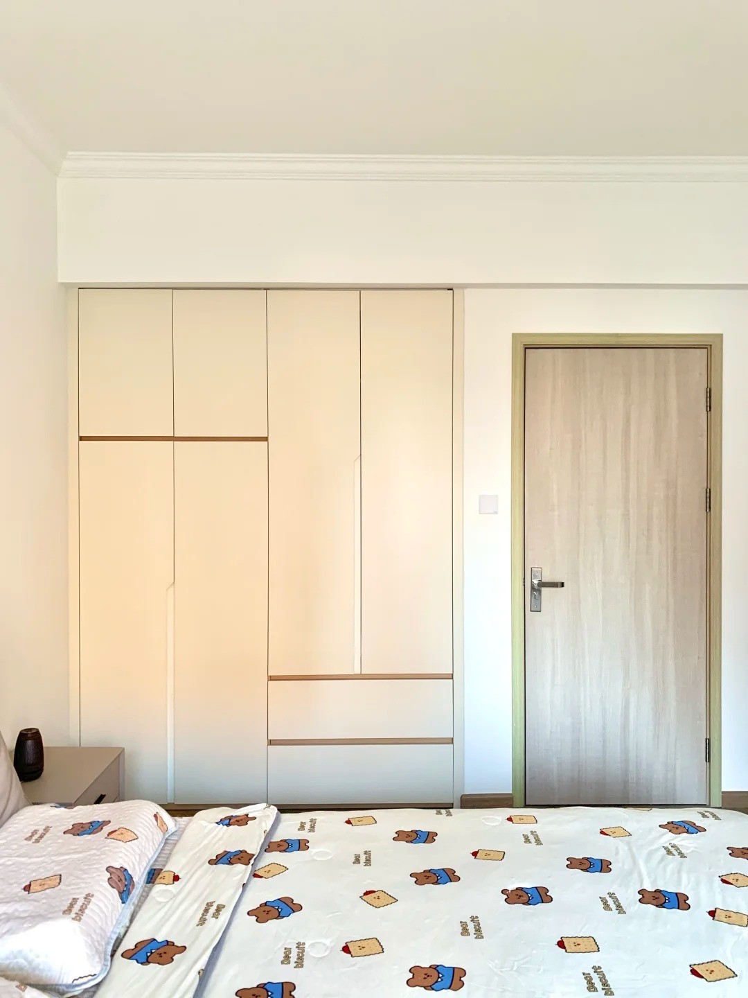 定制柜搭配原木色柜体+奶油白柜门 整个家都被温柔包裹着