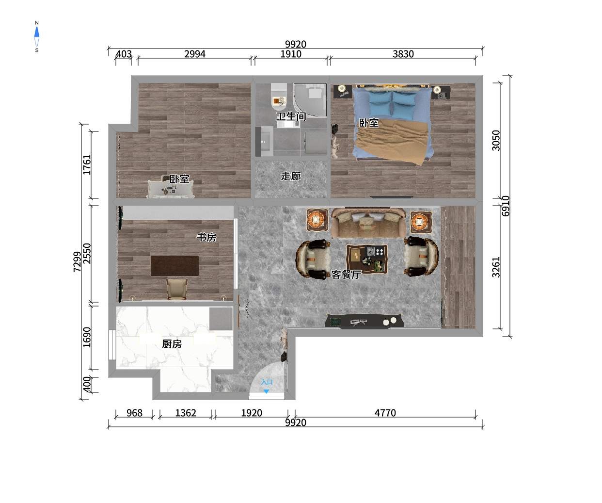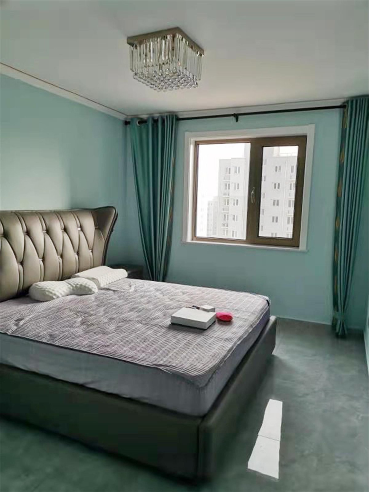 主卧采用蓝色乳胶漆,没有过多的装饰反倒让人觉得卧室更加温馨,舒适。