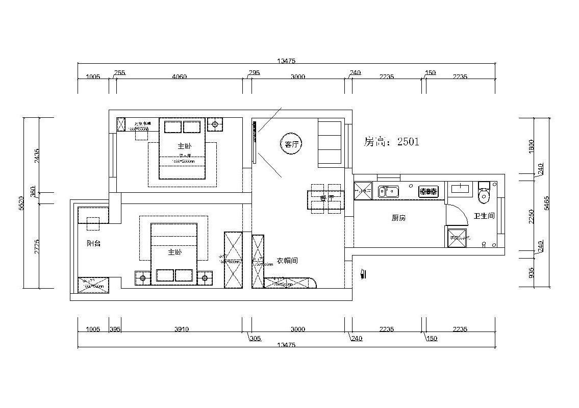 婚房为主,年轻人夫妻两个人,整体现代风格,黑白灰为主,开放式厨房,主卧为网红双眼皮设计,客厅为餐桌吧设计。