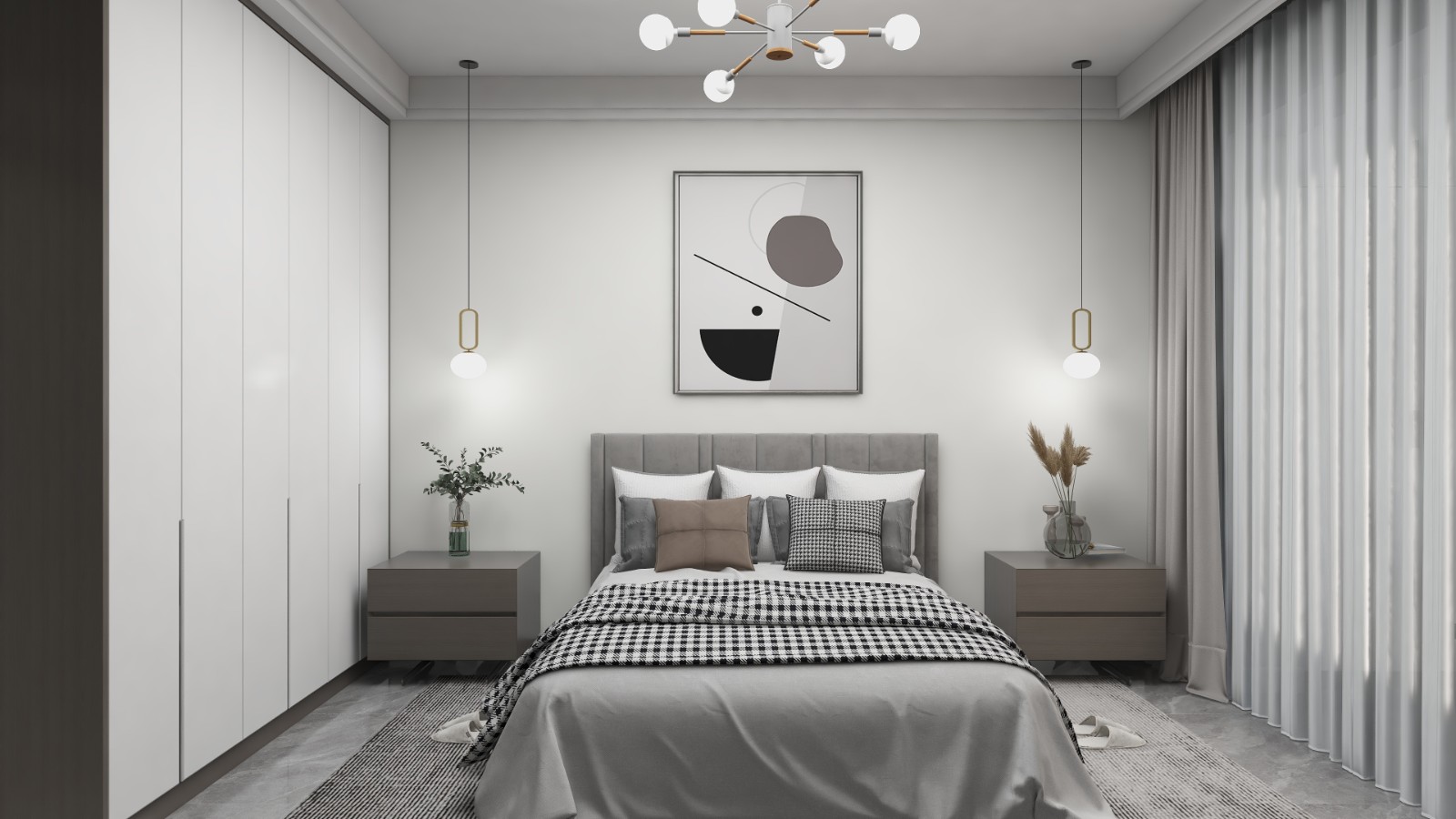主卧背景和窗帘都小吊灯都选择带有点轻奢风。