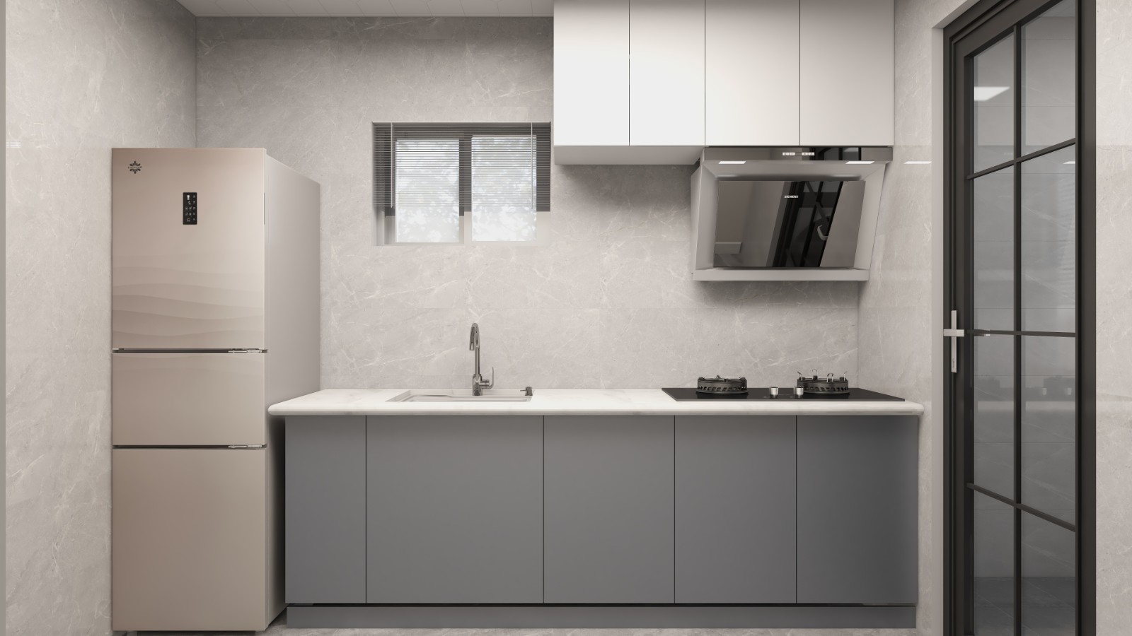 厨房瓷砖整体白色上墙,浅灰与白色搭配的厨房干净整洁。