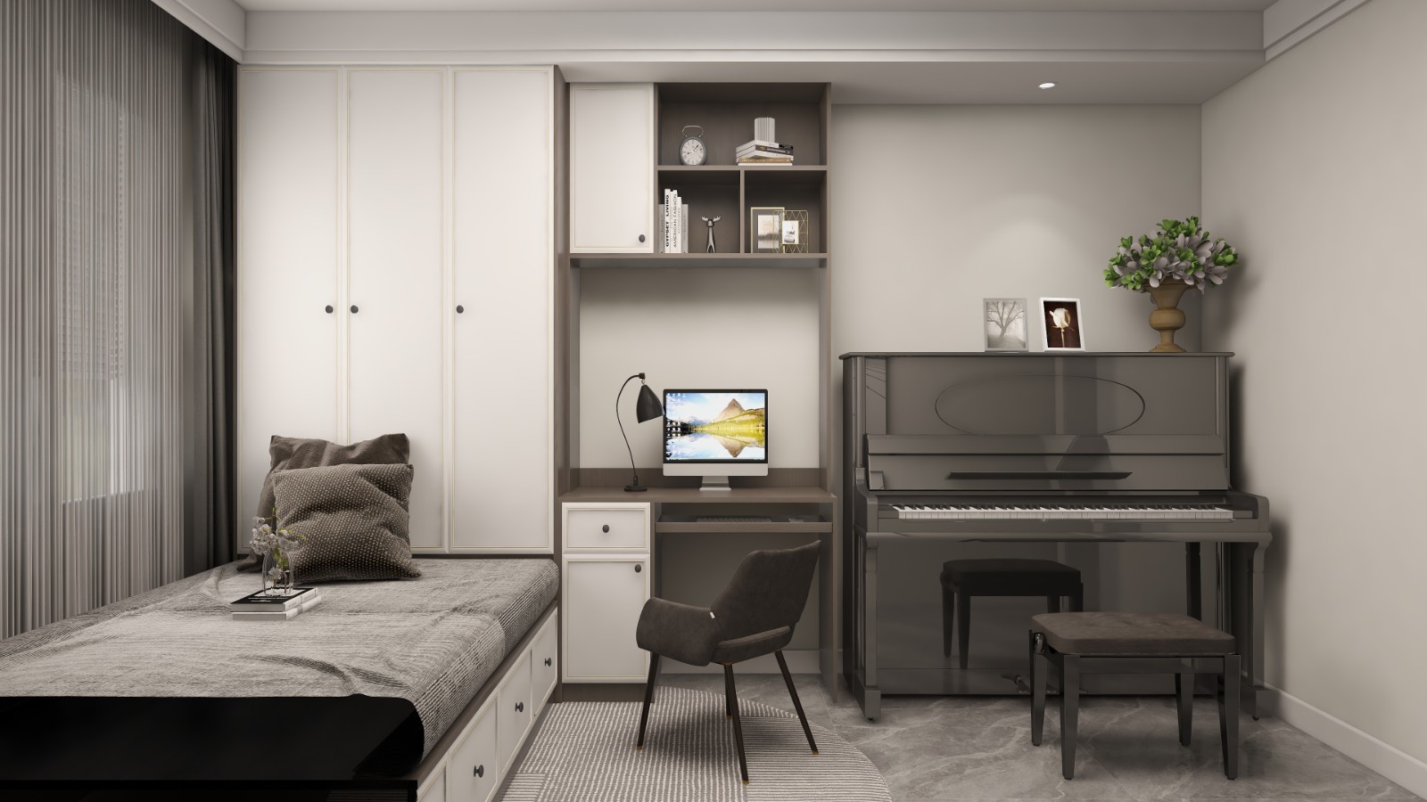 次卧榻榻米设计,1,2米小床家里来客人可以休息。平时作为书房和钢琴室。