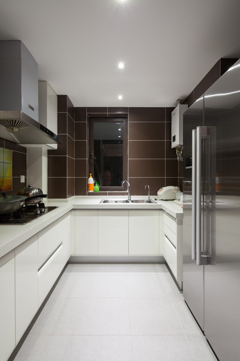 独立厨房,采用白色柜子,