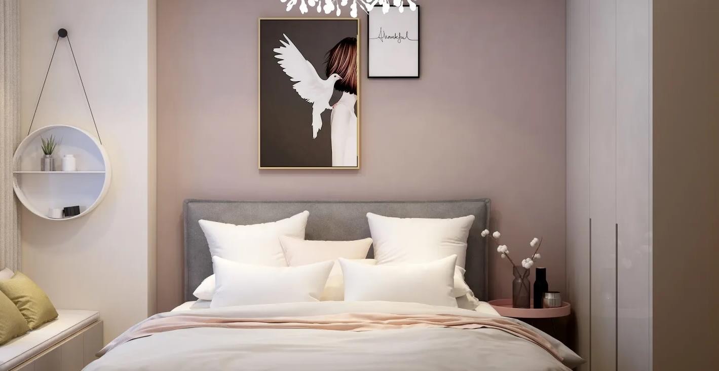 卧室整体色调以及背景画都相互呼应,整体协调。