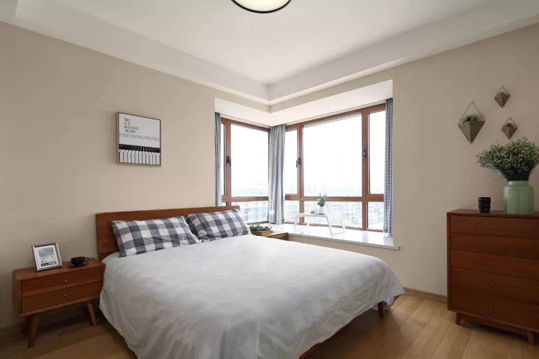 卧室以淡粉色的暖系空间,整体简单的布置,营造出一个舒适惬意的空间感。
