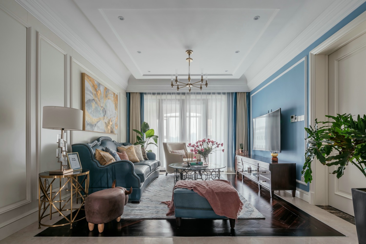 美式风格的吊顶和乳胶漆调色