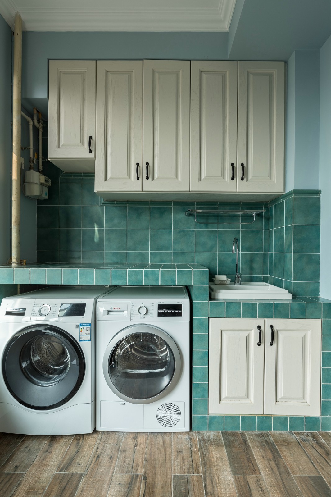 开放式厨房是白色柜子搭配