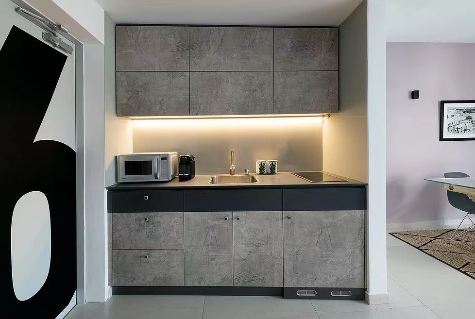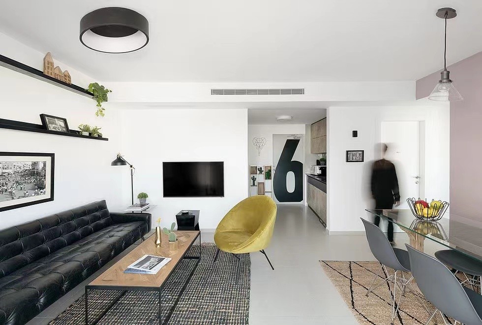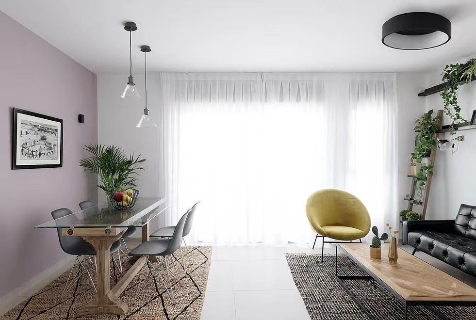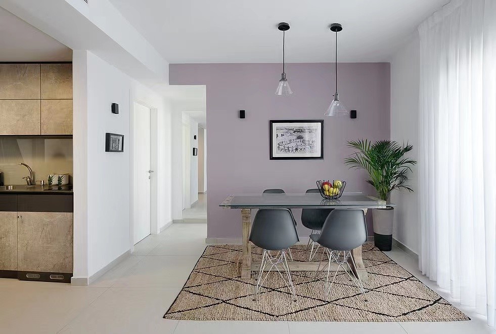 餐厅背景墙运用冷紫色调,与其他空间对比且呼应