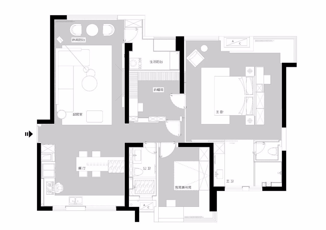 空间以黑白灰为主色调
