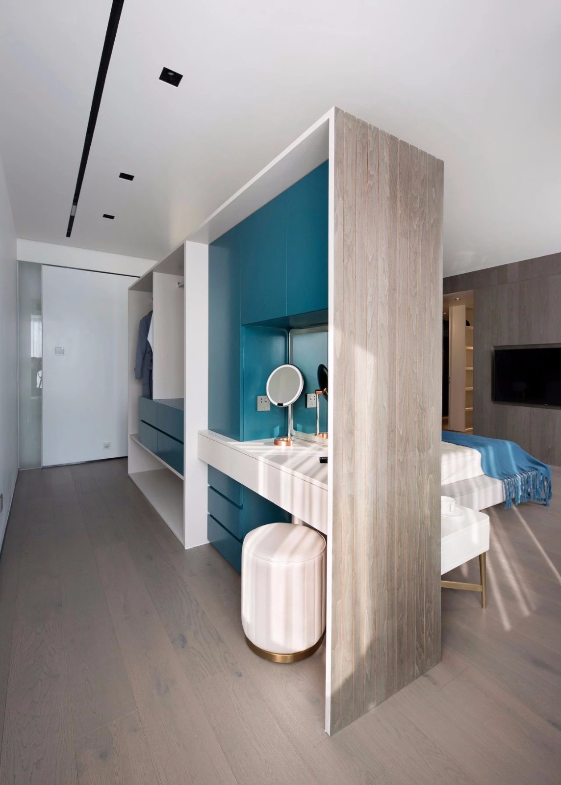精巧地将衣帽间置于床背景板之后
