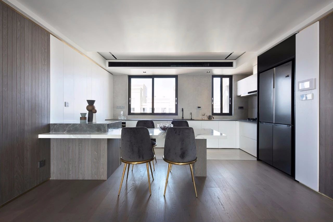师展现出极简主义的稳重和不失惊艳的韵味,空间宁静的外表下藏着一颗炽热的内心。 通过木质元素的充分运用、***灰调的质感以及扑面而来的轻奢优雅