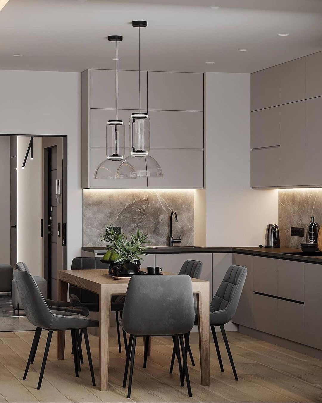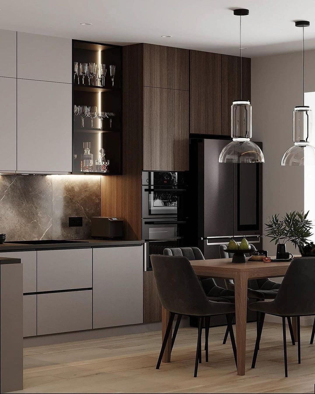 吊柜上还打造了摆放高脚杯的空间,细节满满。