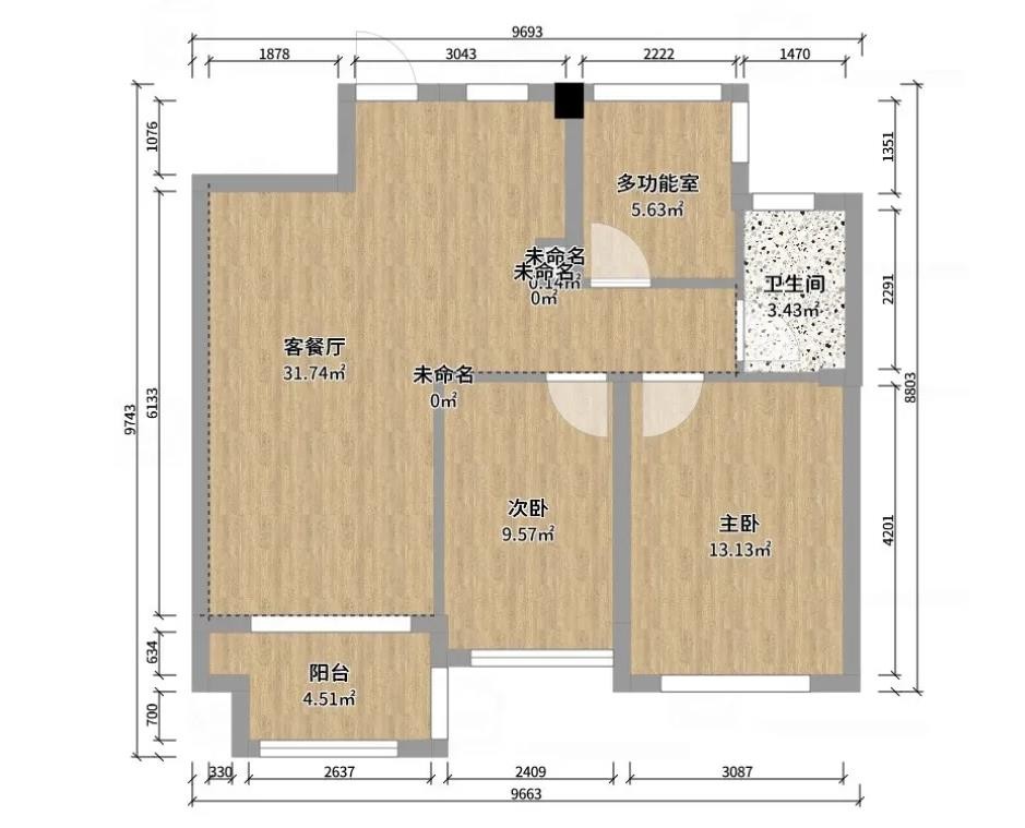 户型方正,整体南北走向,通风性良好,大面积的窗户增加了房屋整体的采光,空间划分合理