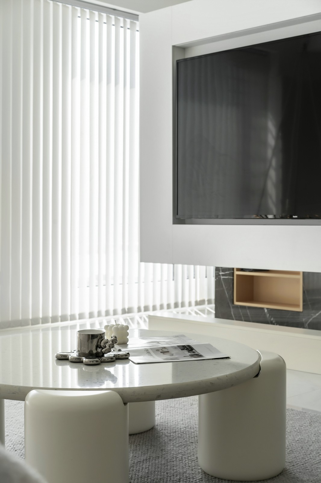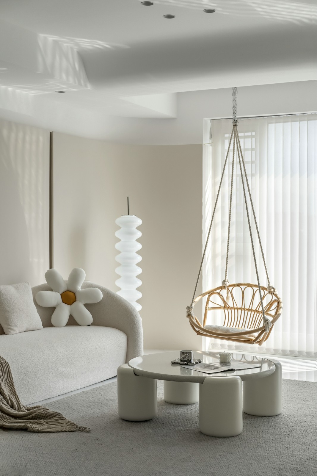 舒适的座椅、毛毯,加诸于白色基调如同画布般的空间背景中,呈现出放松、安定的氛围,又有默然的温情,呼唤人们在忙碌中找到自己的节奏,以平和的心态去感受生活的美好