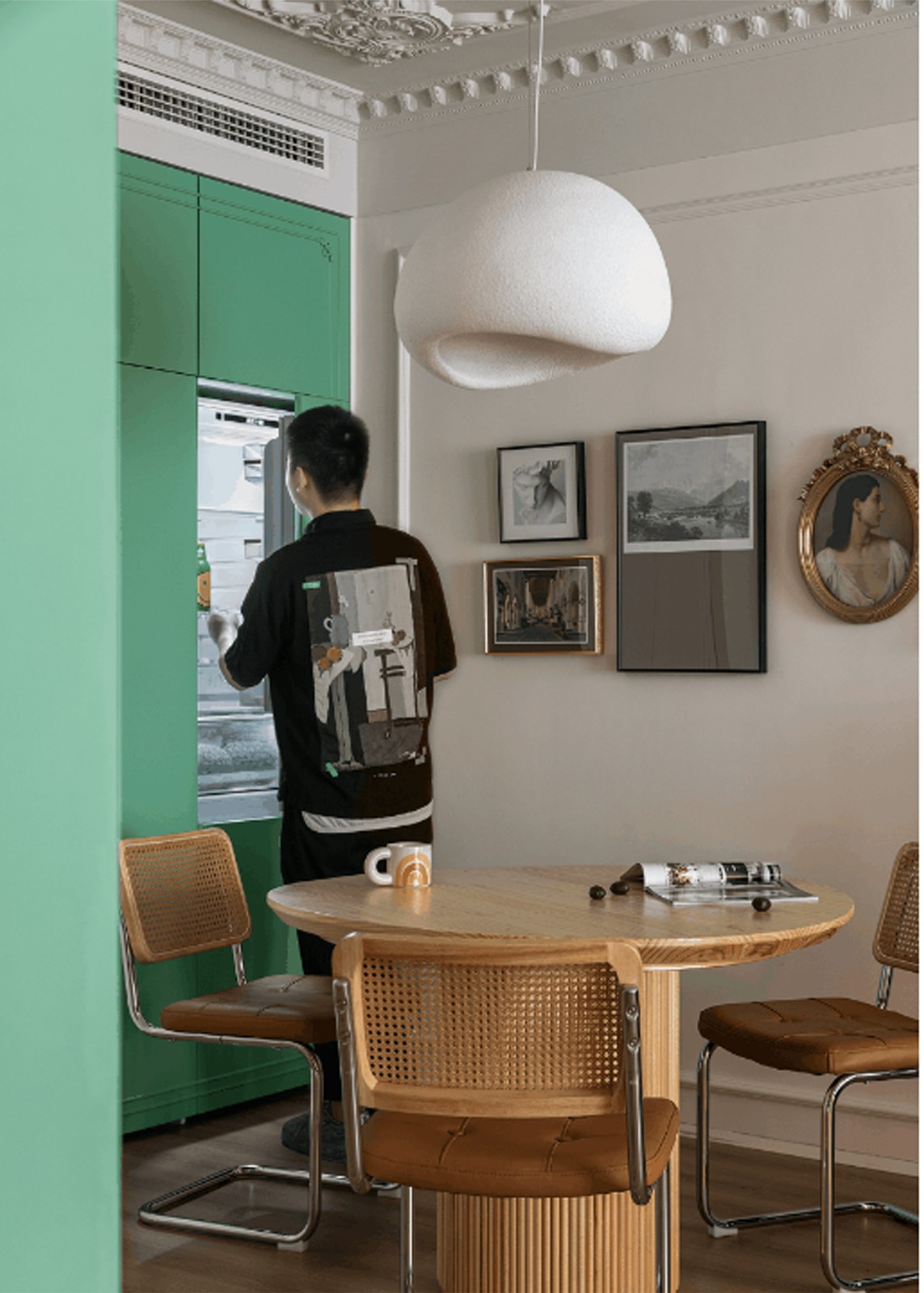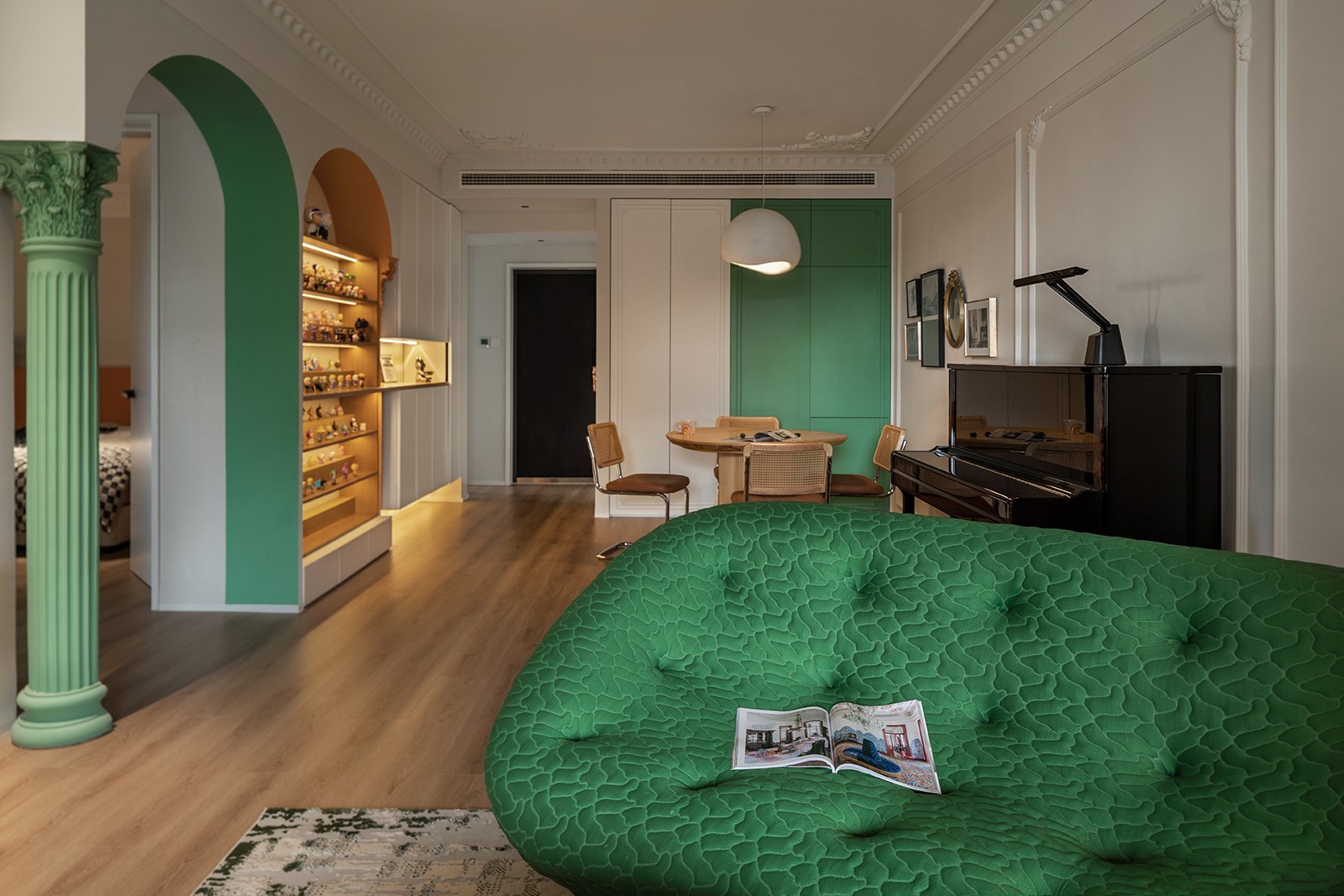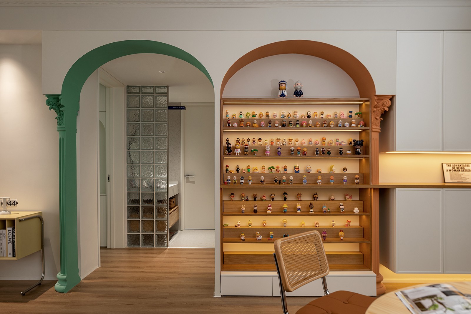 几何是空间内划分区域的内建筑装置,亦是风格基调奠定者,也是潮玩热爱的落脚点。几何的节奏,对称的庄严,与法式雕花的精致,彼此应和,相互消解,将归家的仪式,和温柔的优雅汇于生活的日常动线里。