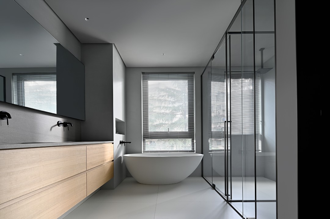 浴室内贴心的做了干湿分离,偌大的浴缸瞬间就勾起了人们对于泡澡的美好期待,窗外的自然之景更是为整个浴室增添了几分美感。