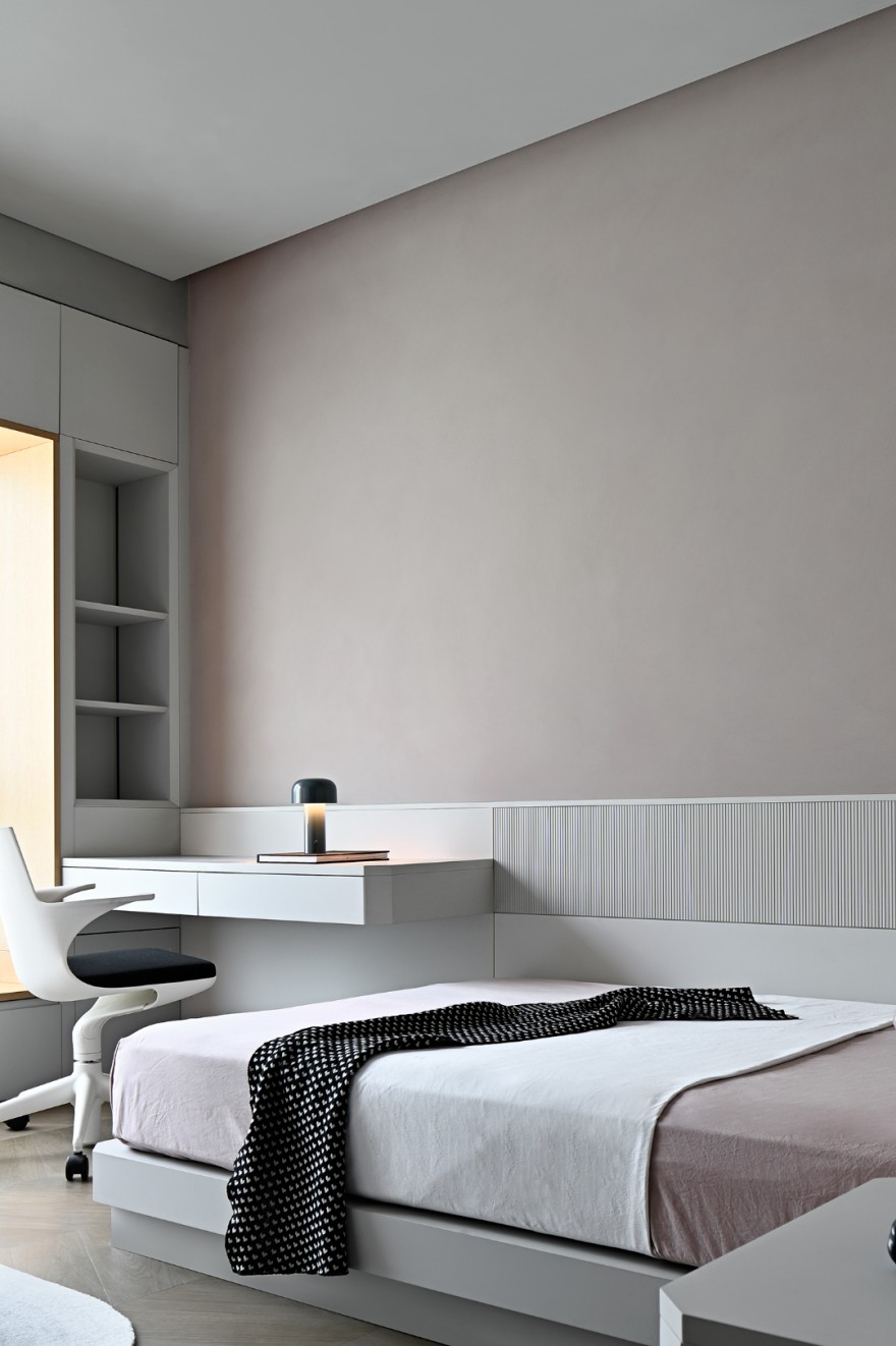 儿童房则呈现出一片的莫兰迪粉色,清爽的颜色不禁让人想起了儿童天真烂漫的脸庞。