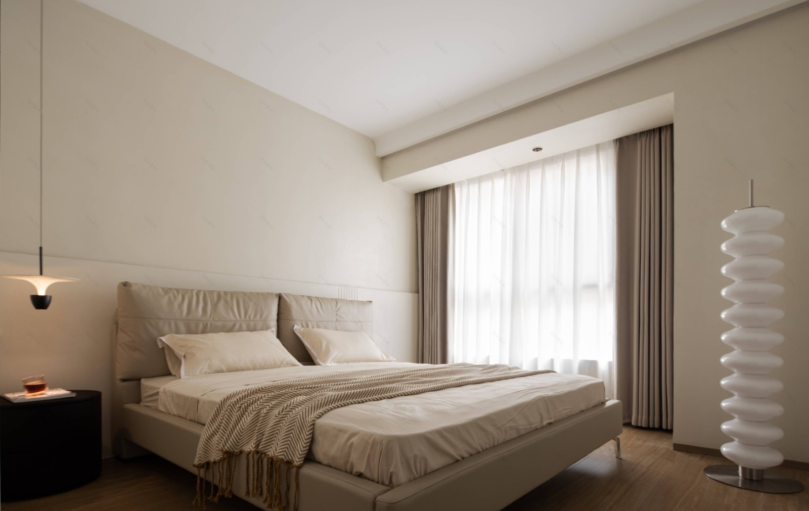 主卧依然延续客餐厅的奶油色,整个空间静谧而细腻。