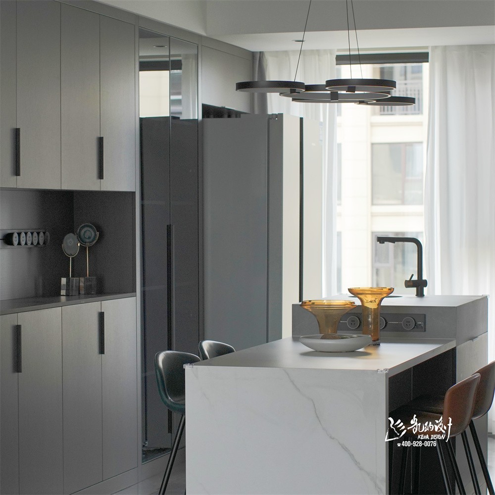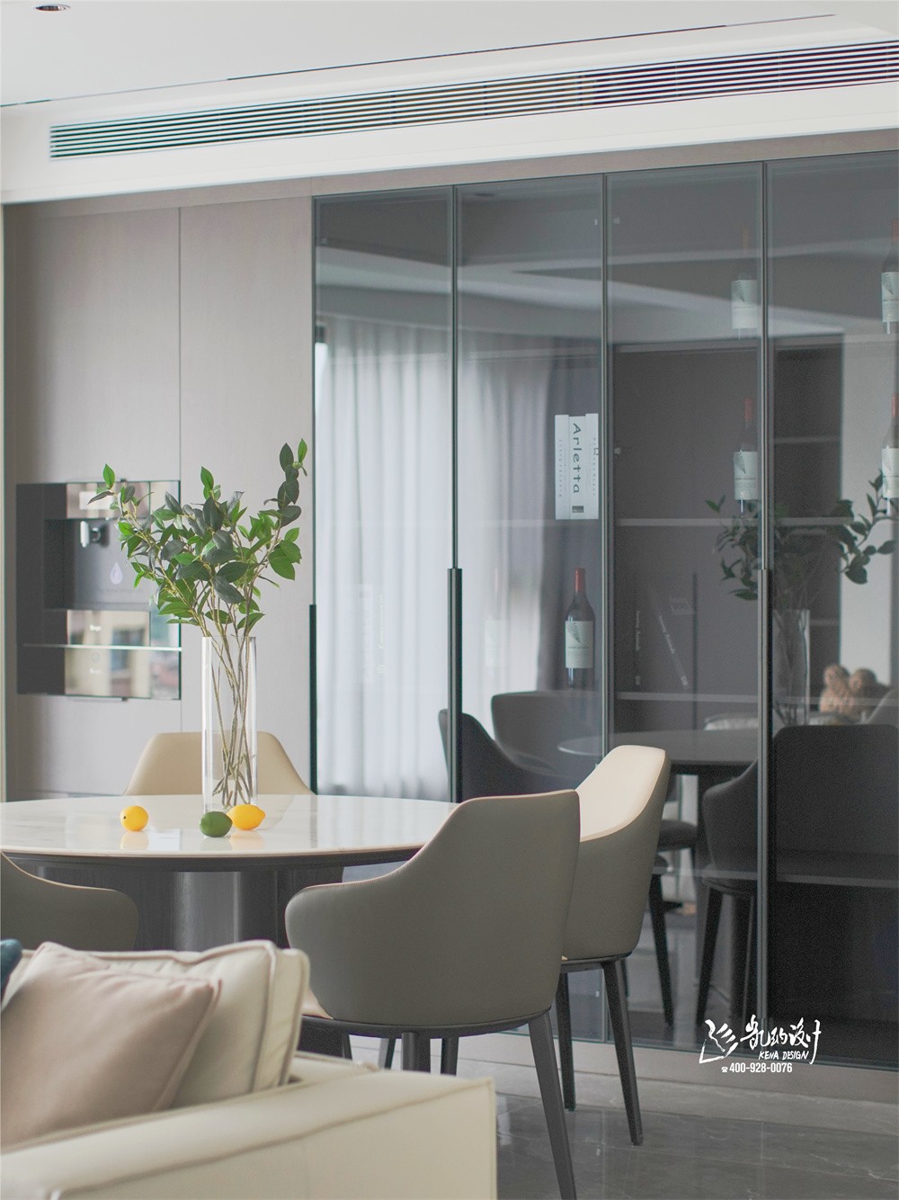 比如餐厅的定制,线条模块干净利落,分离传统中厨的收纳压力,功能细化,细节又保持亮点,让空间获得更多的自由行与实用性。