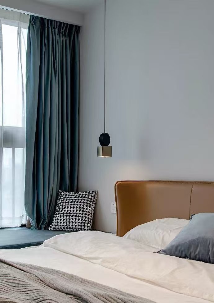 卧室简单的装饰灯 配木色的床