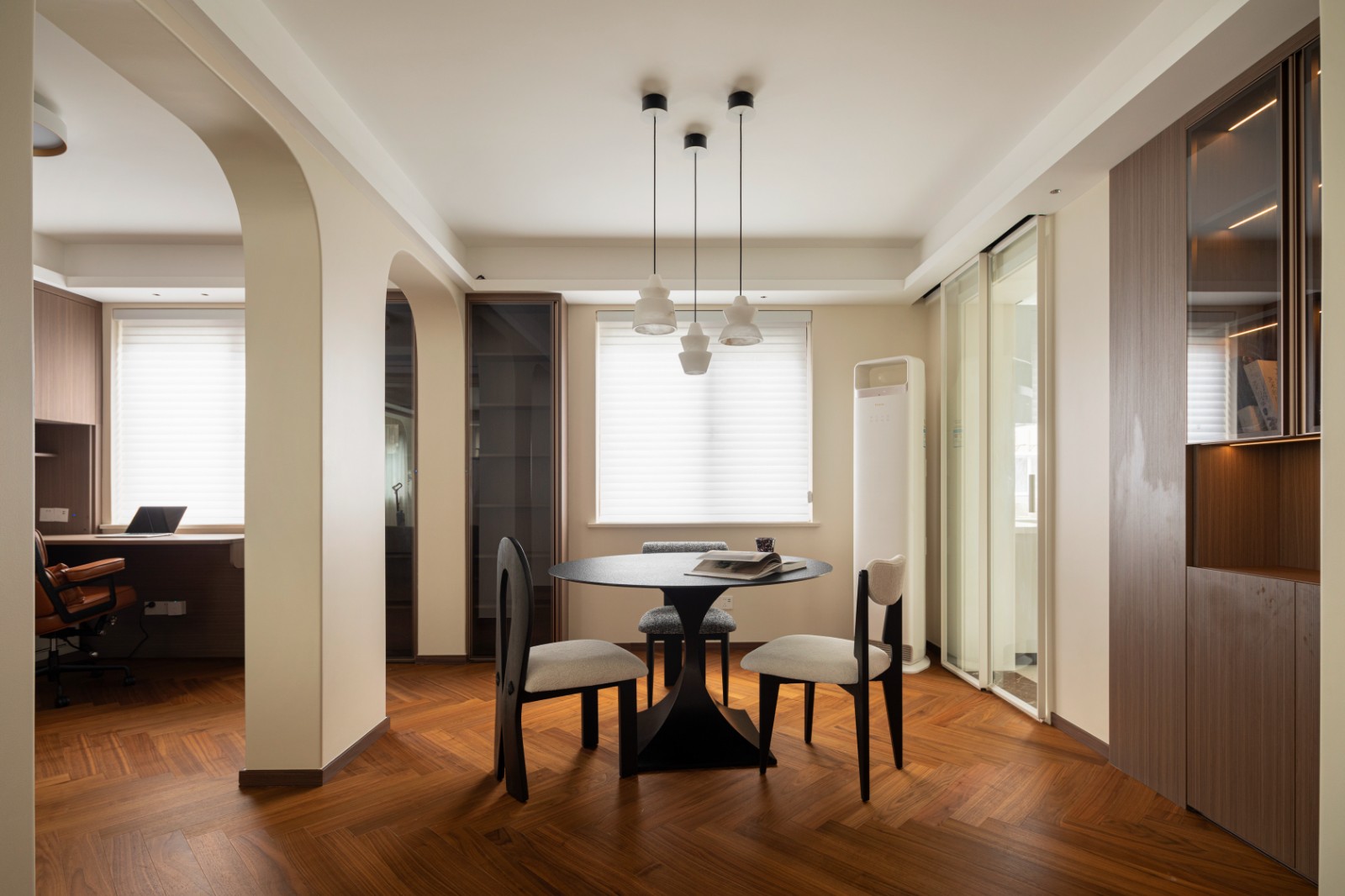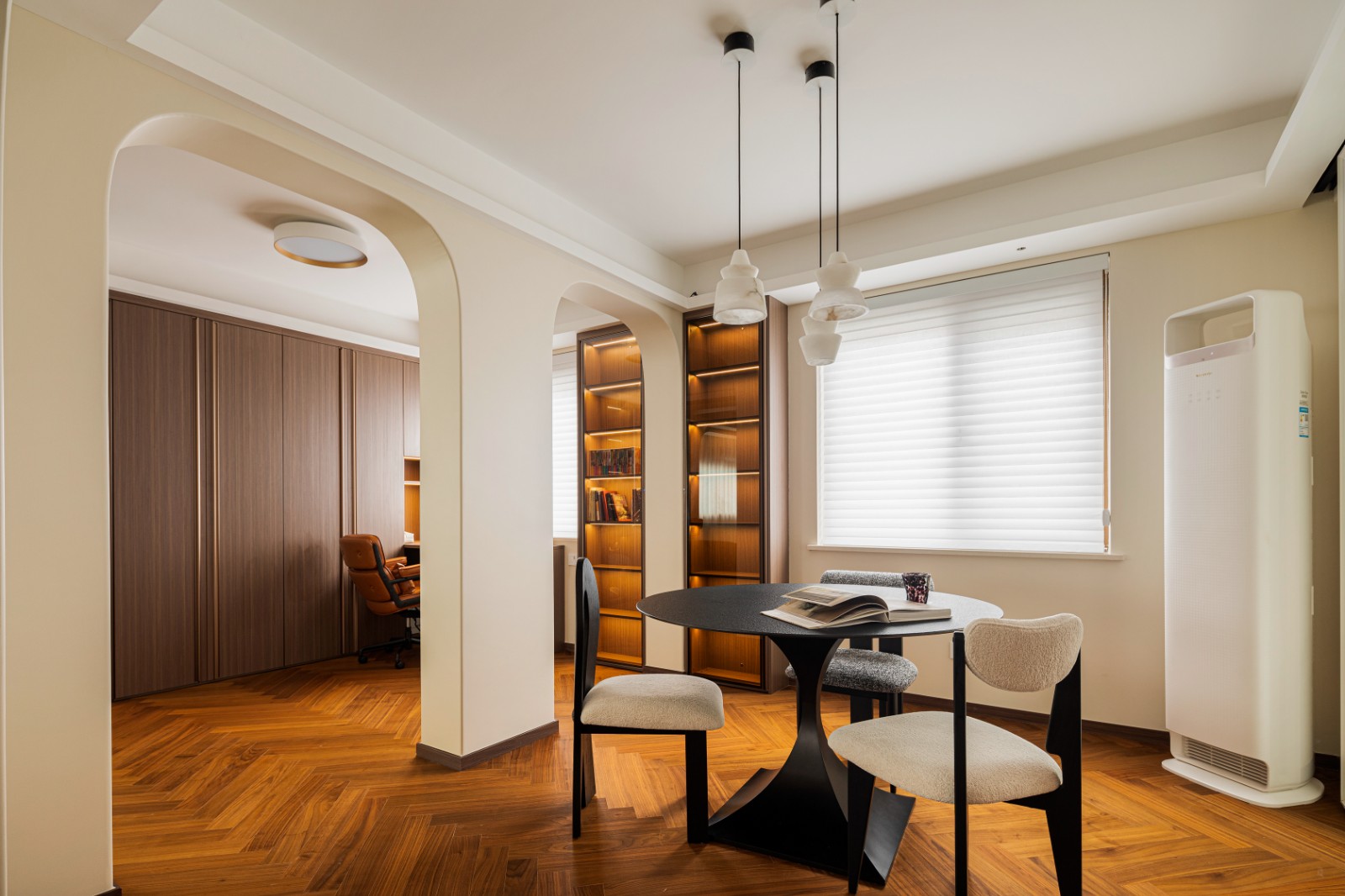 客厅后暗藏玄机,一桌一椅一扇窗,一灯一人一卷书,到不了的远方,文字带你抵达。向阳而生,在一场永不落幕的晨曦中,喧嚣散去,只剩光与木的低语。