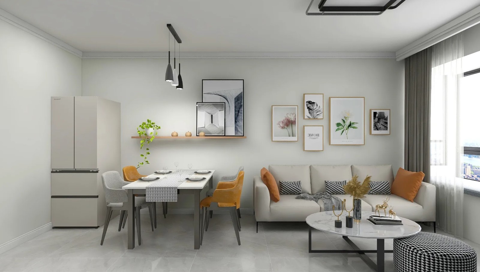 客厅设有独立光源,暖色的照明给室内带来温馨的舒适感。
