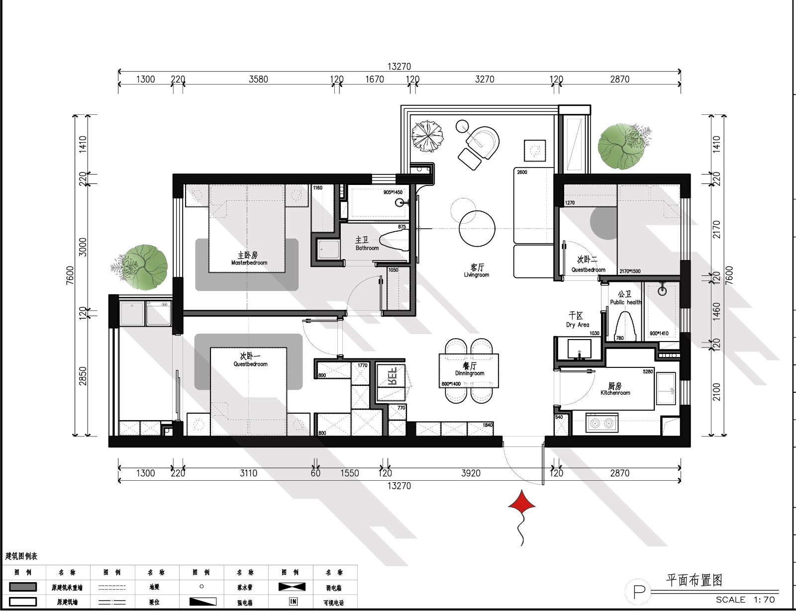 在空间布局上,首先扩大餐厅的位置,让客餐厅更为开阔整体。将冰箱放置在餐厅处,不影响厨房台面的使用空间。合理利用墙体的堆砌方式,将公卫的台盆嵌入墙体内,不占用过道的空间使用。尽可能多的储物空间。