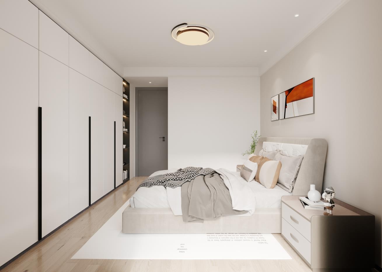 卧室衣柜的打造联动着整面墙体,完全满足收纳需求。大气的呈现,实质性的结合,让整个卧室充满十足的张力。