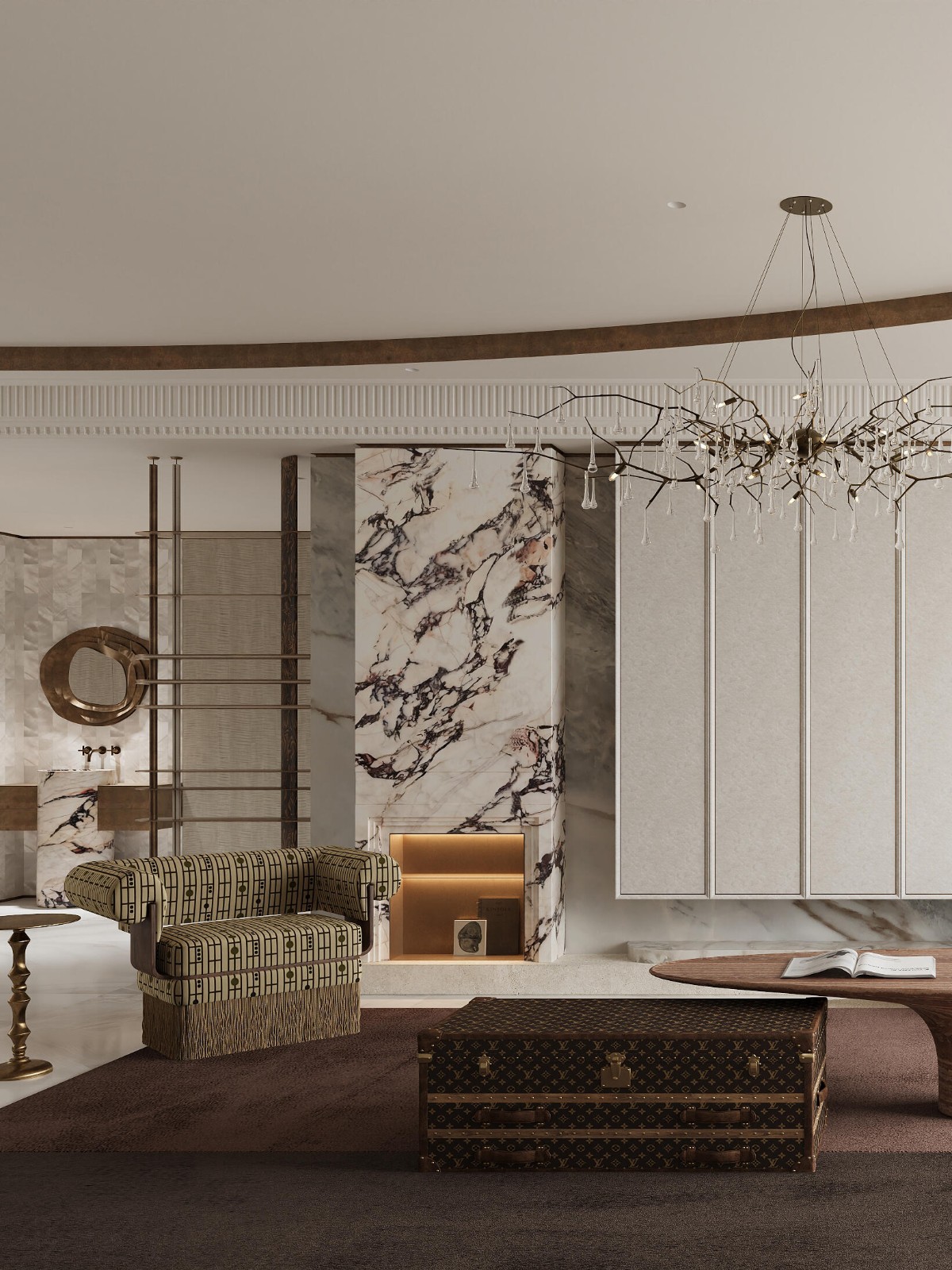 大理石纹路的自然肌理,与沙发调性相得益彰,柔软与坚固的属性相调,赋予了整个客厅更多灵动的可能。