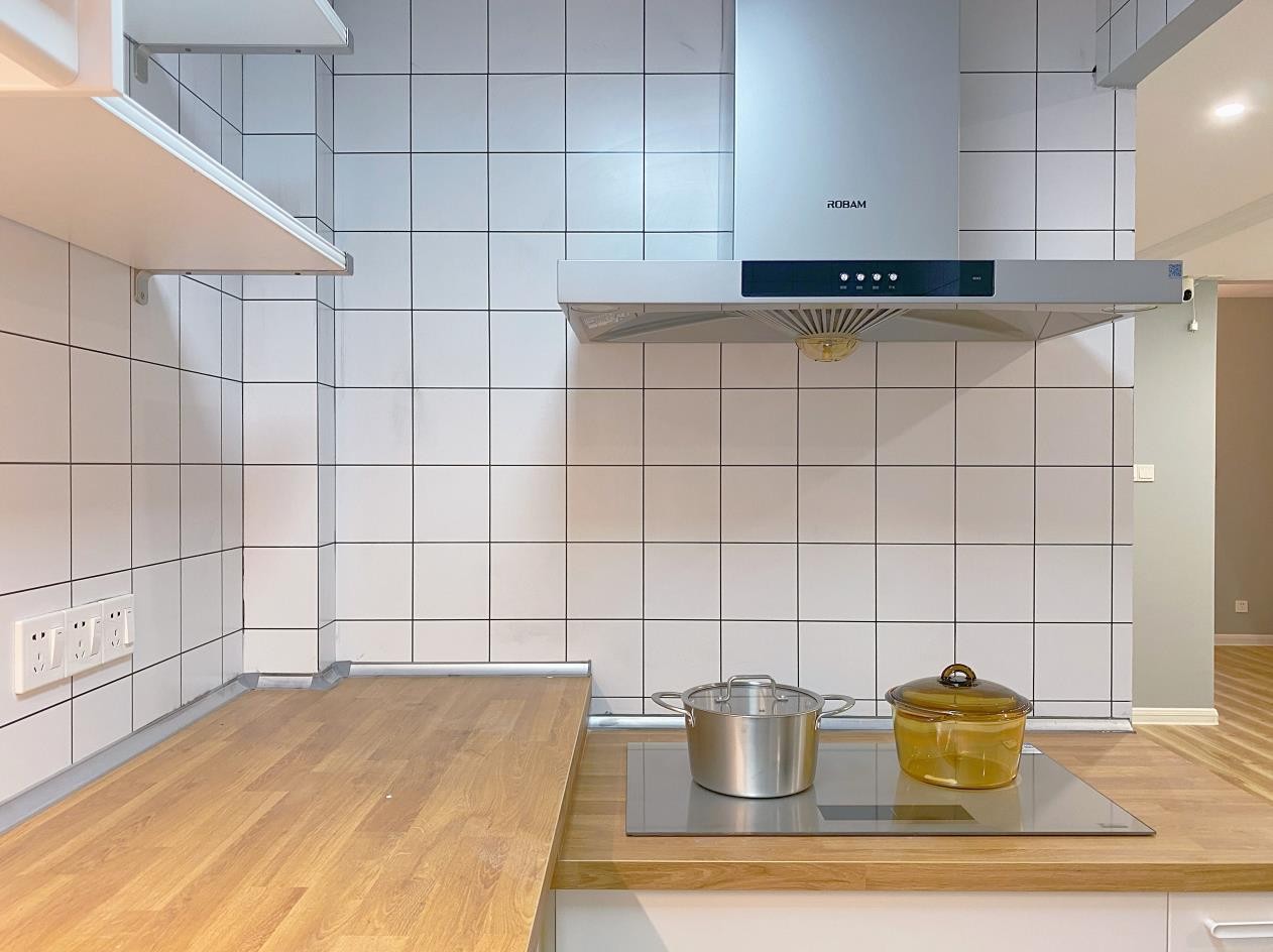厨房的翻新改造,首先以提升收纳为主。"U"型操作台及上下储物柜在很大程度上解决了收纳问题。