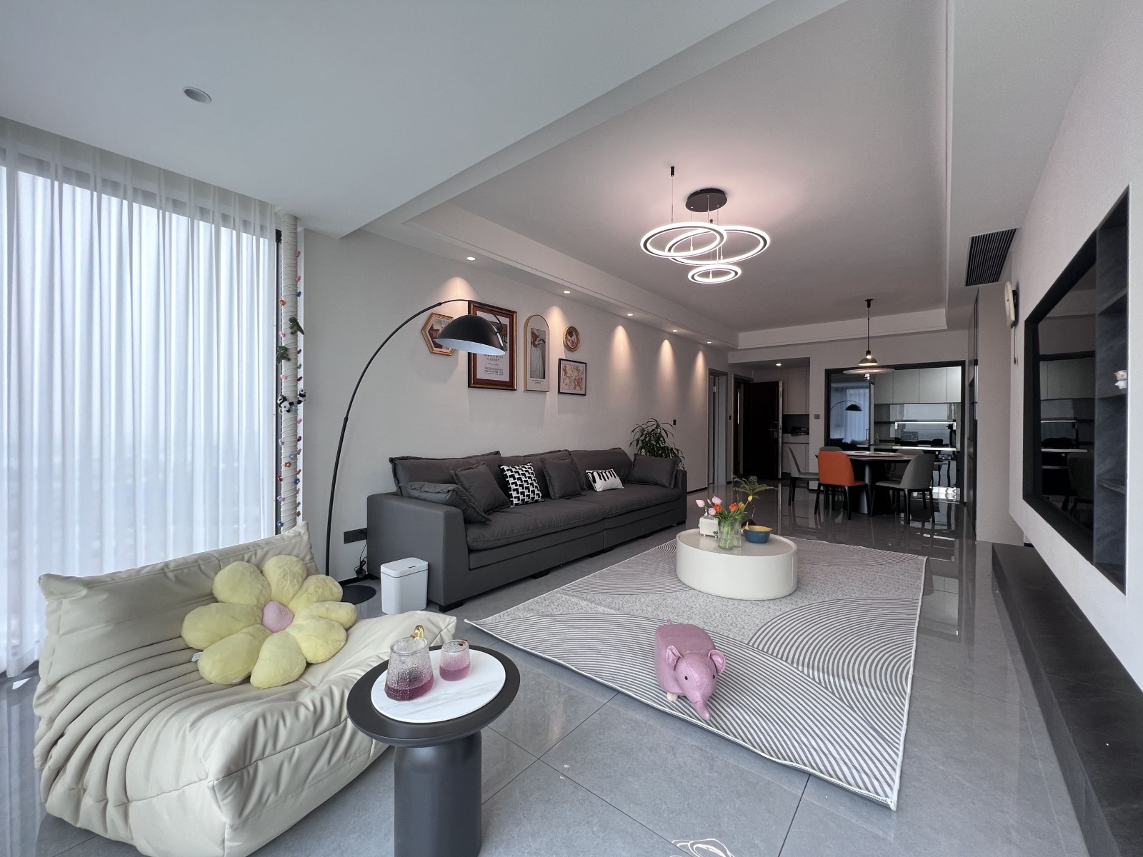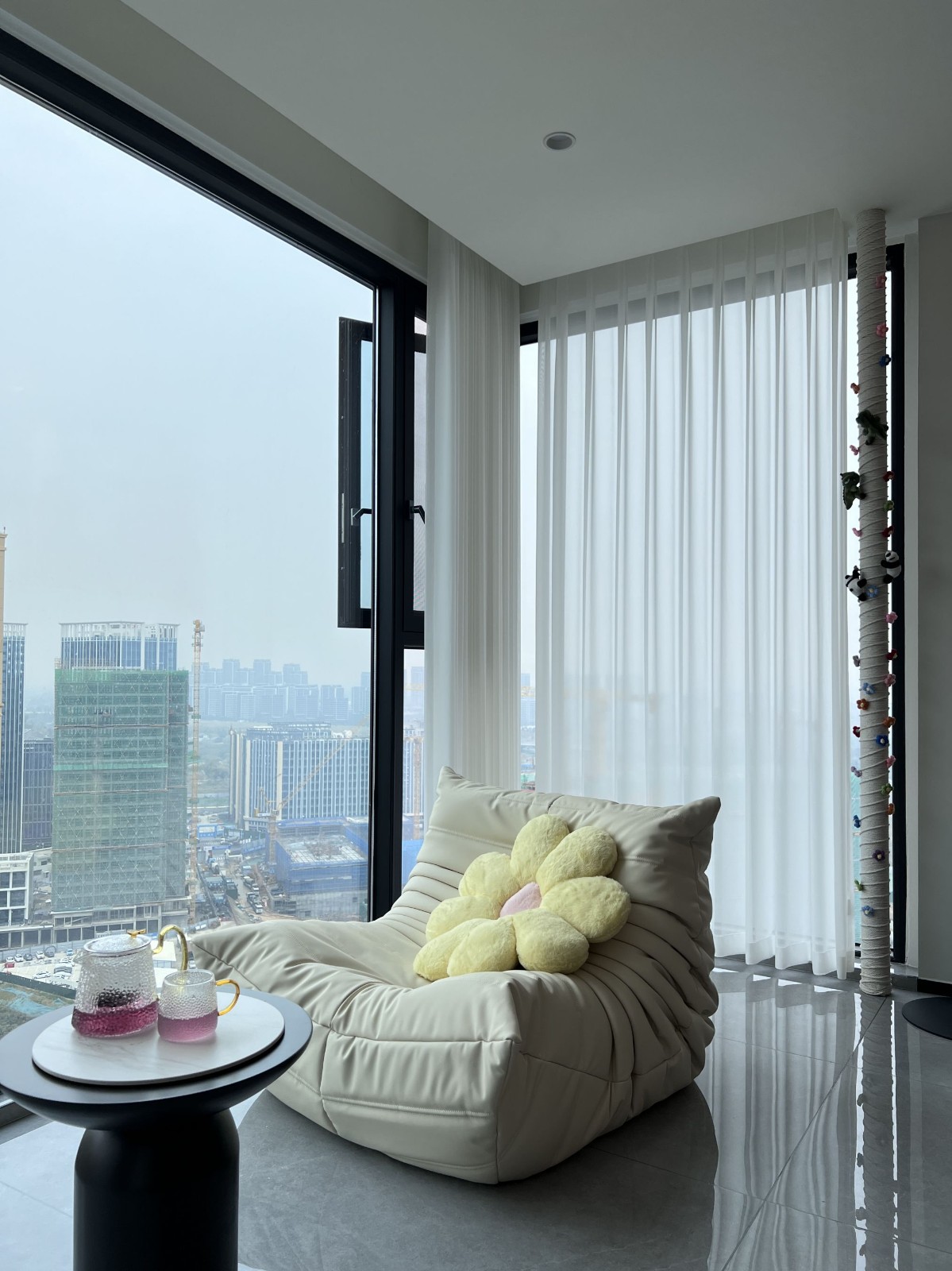 4.大落地窗的布局,让客厅通透明亮,阳光充足。独特的景观视野,为居家生活增添一抹诗意,可以在繁华都市中找到宁静与舒适。
