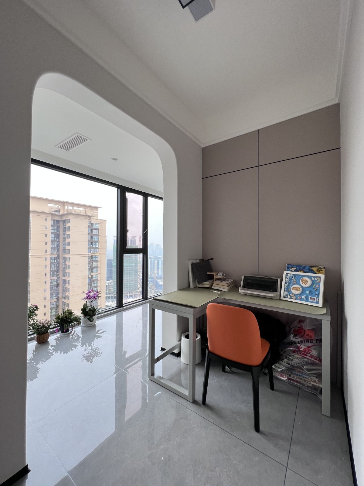 1.书房与阳台采用拱门设计,独特优雅,为家居空间增添一份浪漫气息。拱门造型优美,具有较高的观赏性,同时能起到隔断作用,使书房和阳台空间相对独立。这种设计既保持了空间的通透性,又具备一定的私密性。阳台可作为休闲区域,与书房相互呼应,让居住者能够在繁忙的生活中找到一处宁静的空间。