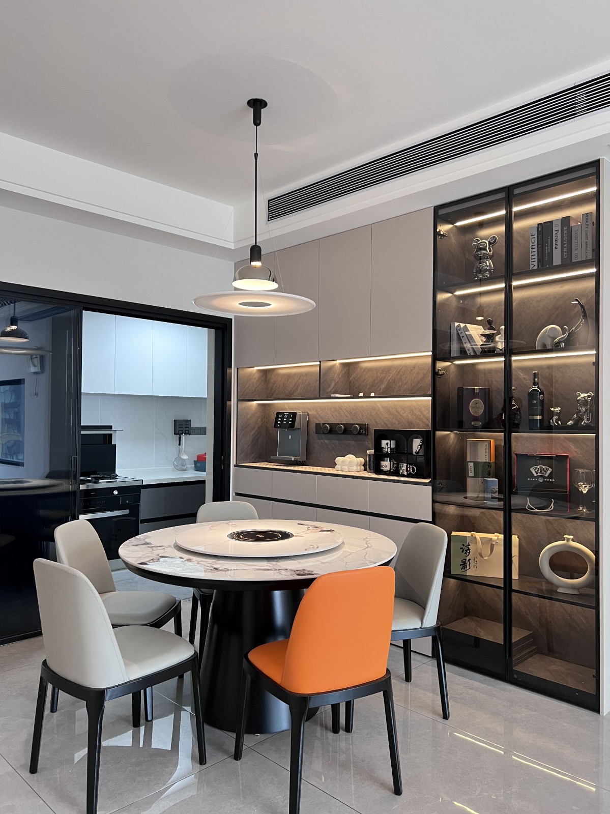 奶白色沙发与黑白色圆桌的组合,简约时尚,凸显品味。在阳光明媚的午后,邀请好友相聚,品尝各式茶点,畅谈人生,度过悠闲时光。奶白色沙发给人温馨舒适的感觉,搭配黑白色圆桌,增添优雅氛围。在这样的环境下享受下午茶,不仅品味美食,更是享受生活。
