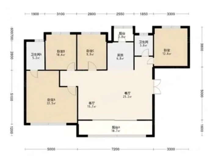 本案为经典横厅户型,四室两卫的格局恰好满足五口之家的居住需求。鉴于家庭成员较多,充足的收纳成为设计核心诉求之一。 在保留主体结构的前提下,设计师提出将客餐厅与阳台打通,并采用全景落地窗设计。此举不仅大幅提升了空间开阔感,实现了引景入室的效果,更巧妙利用阳台区域定制了储物柜,将每一寸空间都落到实处。