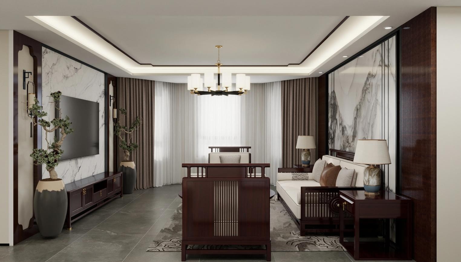 水墨风的电视背景墙搭配中式壁挂灯,这小氛围nao一下子就上来了