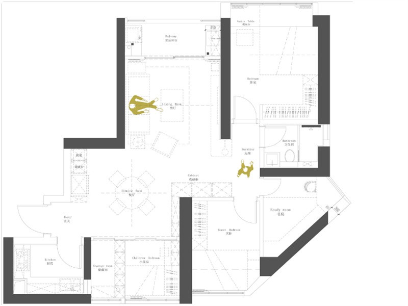 高层建筑承重墙是比较多的,且在此户型中尤其突出。如何针对原来的户型格局,我们做***化的改动,来满足业主的需求。