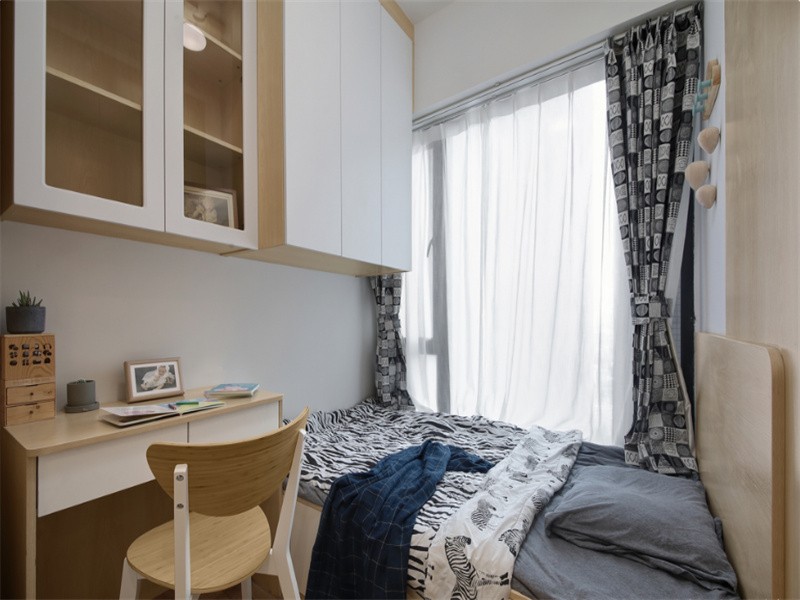 儿童房床的尺寸是经过计算的, 因为要在小空间里把功能做到***, 每一寸每一厘都要精益求精, 儿童房的墙面和地面都利用了