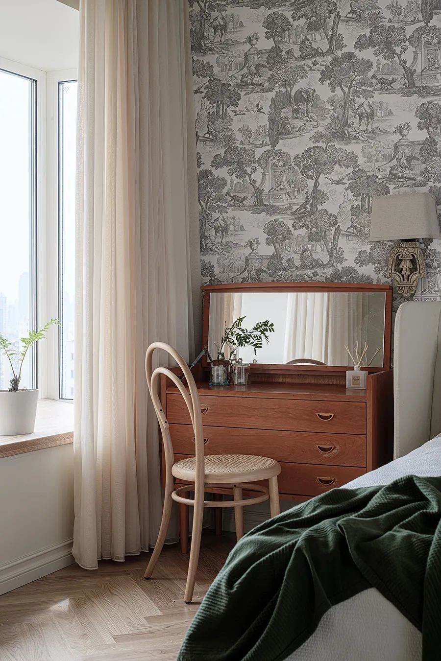 这个部分也是我们留的一个小心机,目前夫妇俩5年内没有生育计划,保不准再远的未来有变化,目前仅夫妇两居住,将两卧室二合一,形成了超开阔了大卧室。