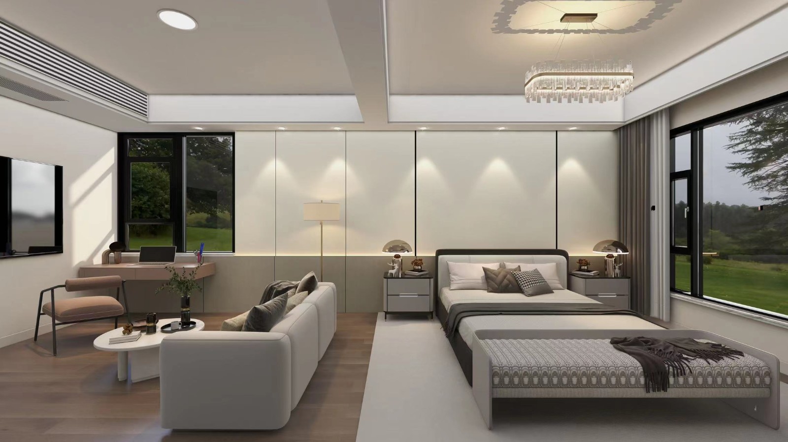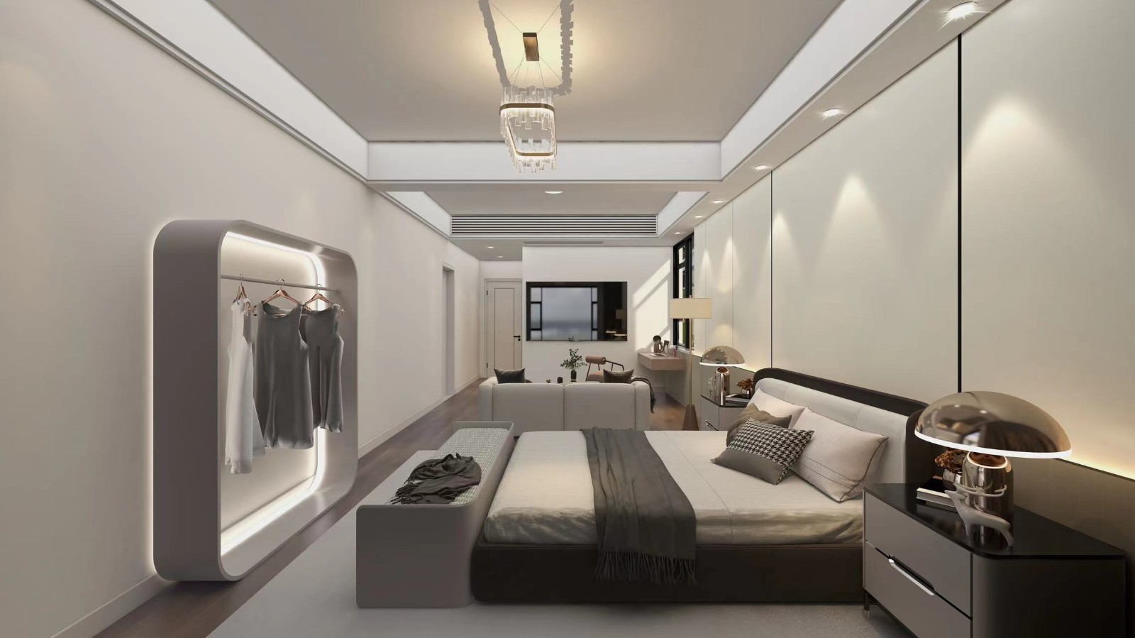 现代简约的卧室大多走的是极简路线,除了陈设简单之外色彩方面也十分追求一种简约舒适。在物品摆放方面越少越好,整体就会更加简单和舒适。设计师按照主户的要求,在简约的卧室中融入了轻奢和***。视觉效果上非常豪华,简单色彩,让卧室显得比较明亮,舒适。