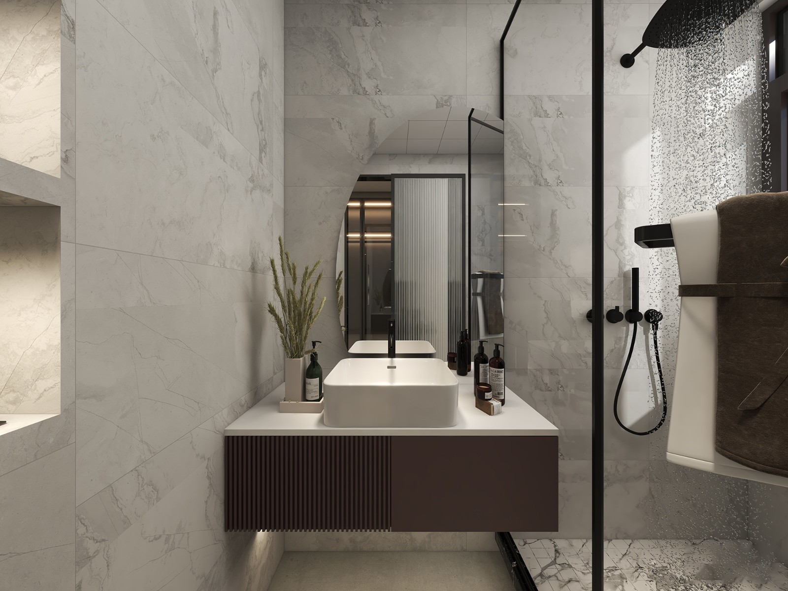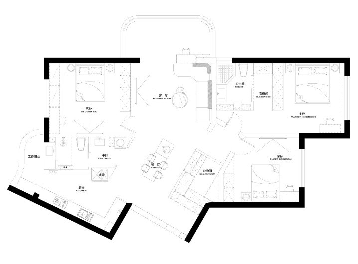 主卧作为套房来使用,从卫生间到步入式衣帽间,形成最短的动线。