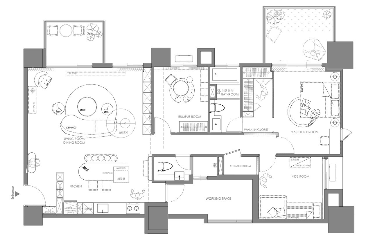一对年轻夫妇带着两个孩子的幸福住所,夫妻二人本身便是家居造型师,对待新鲜事物也有着很高的接受度,以追求个性独立的工业风为主,有了孩子后,他们也逐渐趋于“平缓”,这次的改造将基调定格在:温婉、简约、温馨、梦幻为主。