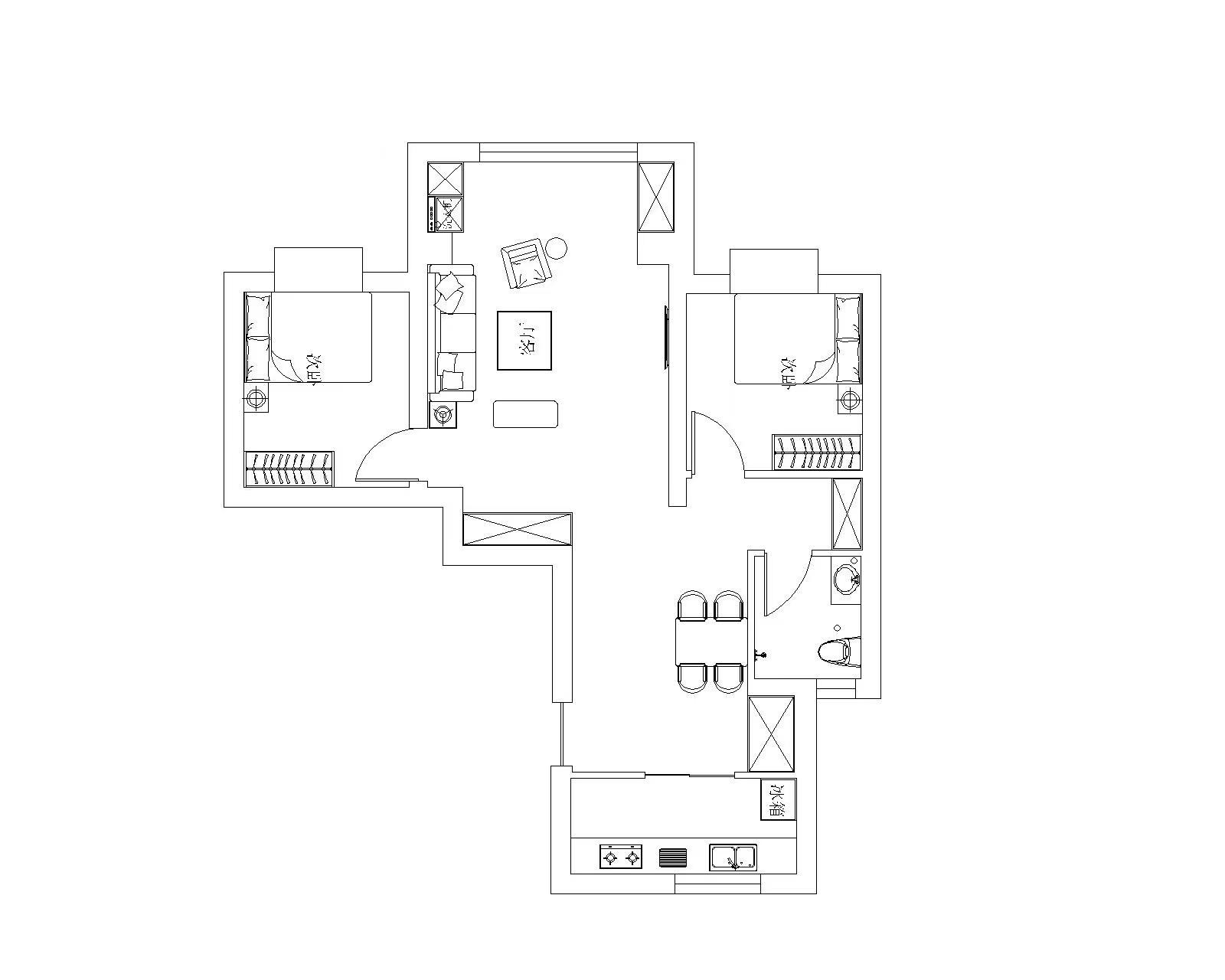 进入入户门,右手边为厨房,入户门正对着的为餐厅。入户门左手边为客厅阳台,从入户门向客厅走左手边为次卧,进入入户门穿过走廊左手边为次卧,走廊右边为卫生间