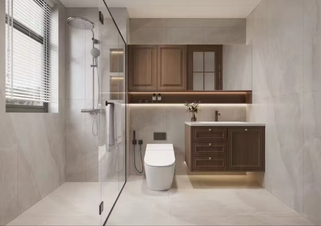 嵌入木饰面的梳妆镜 宛若天生梳妆打扮,氛围感超顶! 盥洗池下面做收纳柜 轻松隐藏水管,分类收纳拿取便捷