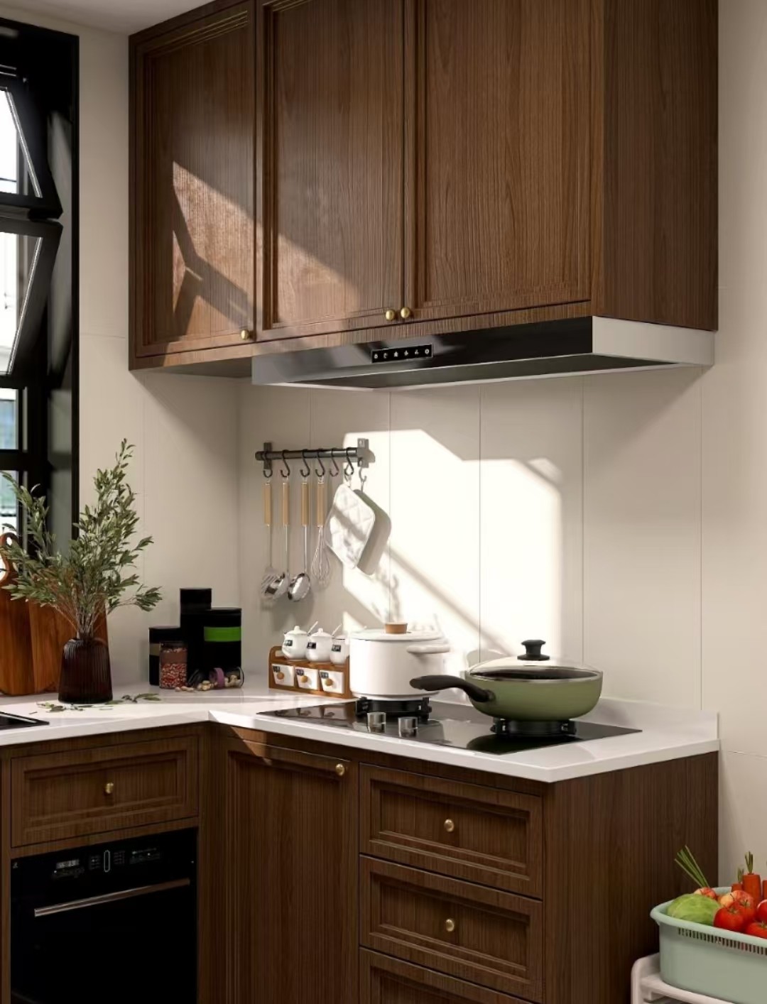 从50年代美式乡村厨房中汲取灵感,将工业风的硬朗与复古情怀的温暖平衡。铁艺、原木、珐琅与手工陶瓷碰撞,打造一个“装满故事”的厨房——这里不仅是烹饪空间,更是家人围坐、咖啡飘香的生活博物馆。